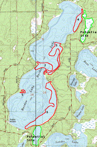Sensitive Area Designation Surveys are an integrated team approach to resource management because they utilize Wisconsin Department of Natural Resources (DNR) staff with expertise in water resources, fisheries, wildlife, water management, and law enforcement. As a team, resource experts collaborate to identify locations around a lake that are critical to the future health and integrity of the lakes ecosystem. Sensitive area surveys provide lake organizations, owners of shoreline property, county zoning officials, DNR personnel, and other interested individuals with site information that can be used to make management recommendations that will help protect and potentially improve the overall health of lakes. DNR staff conducted a sensitive area survey on Whitefish (Bardon) Lake, Douglas County, on 14 and 15, August 2003.