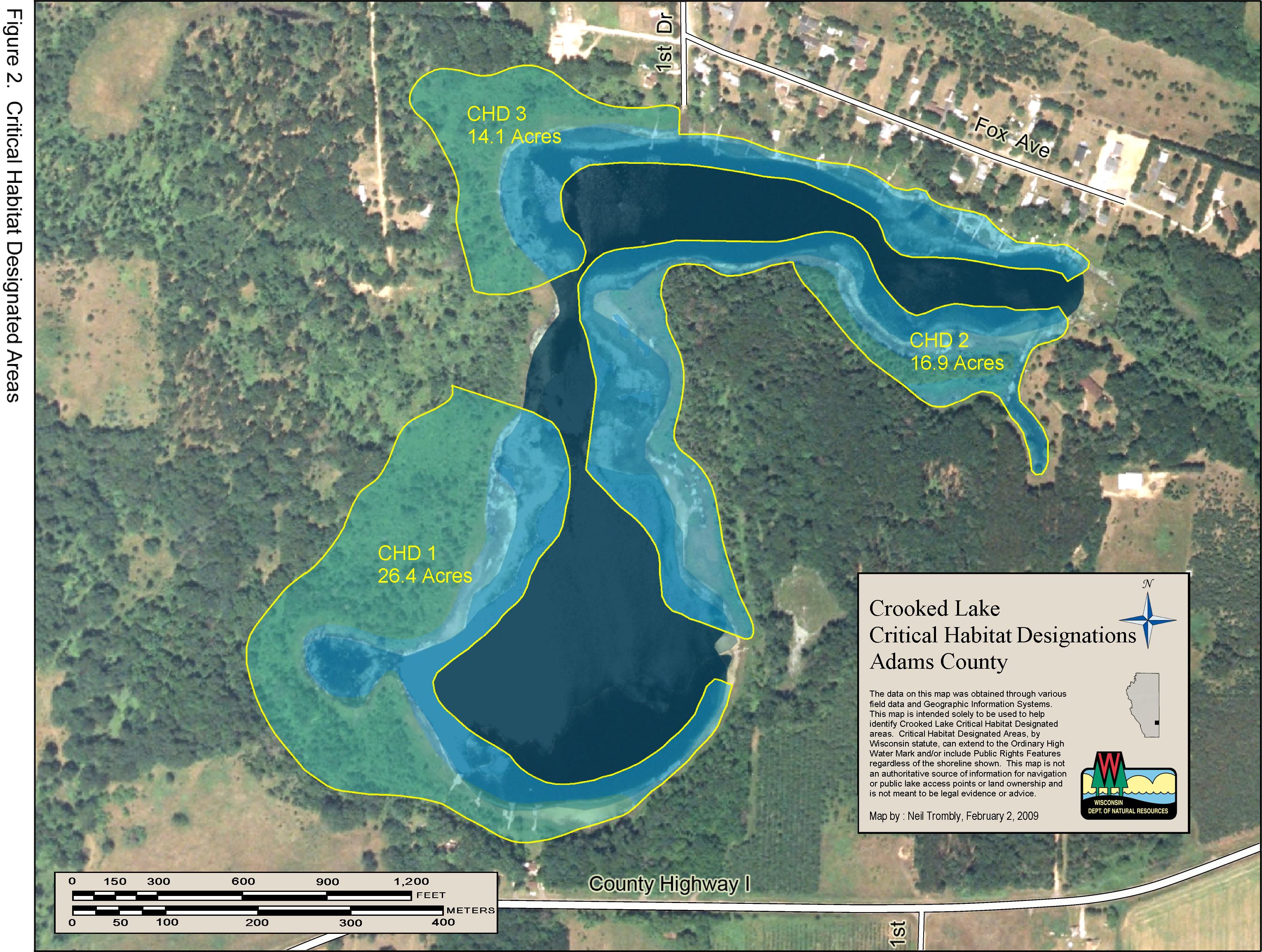 Field work for a critical habitat area study was performed on May 24, 2006, on Deep Lake, Adams County. The designations were assisted by aquatic plant and shoreline assessment data collected in August 2005. Areas were identified visually, with GPS readings and digital photos providing additional information.