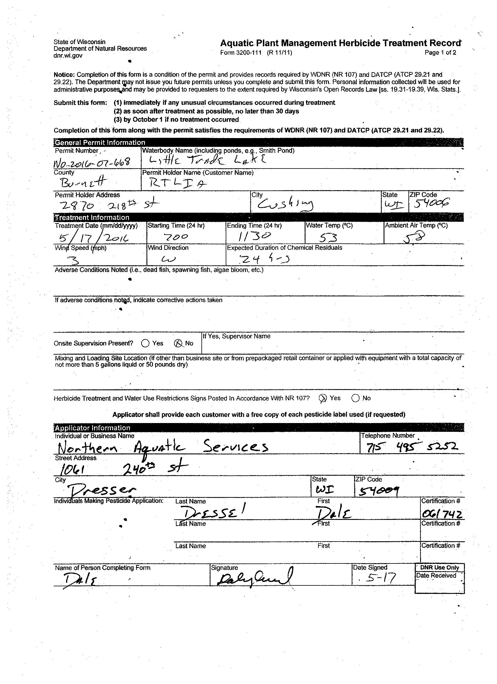 ROUND TRADE LAKE IMPROVEMENT ASSOCIATION: 2016-2017 Trade Lake System AIS Management Implementation