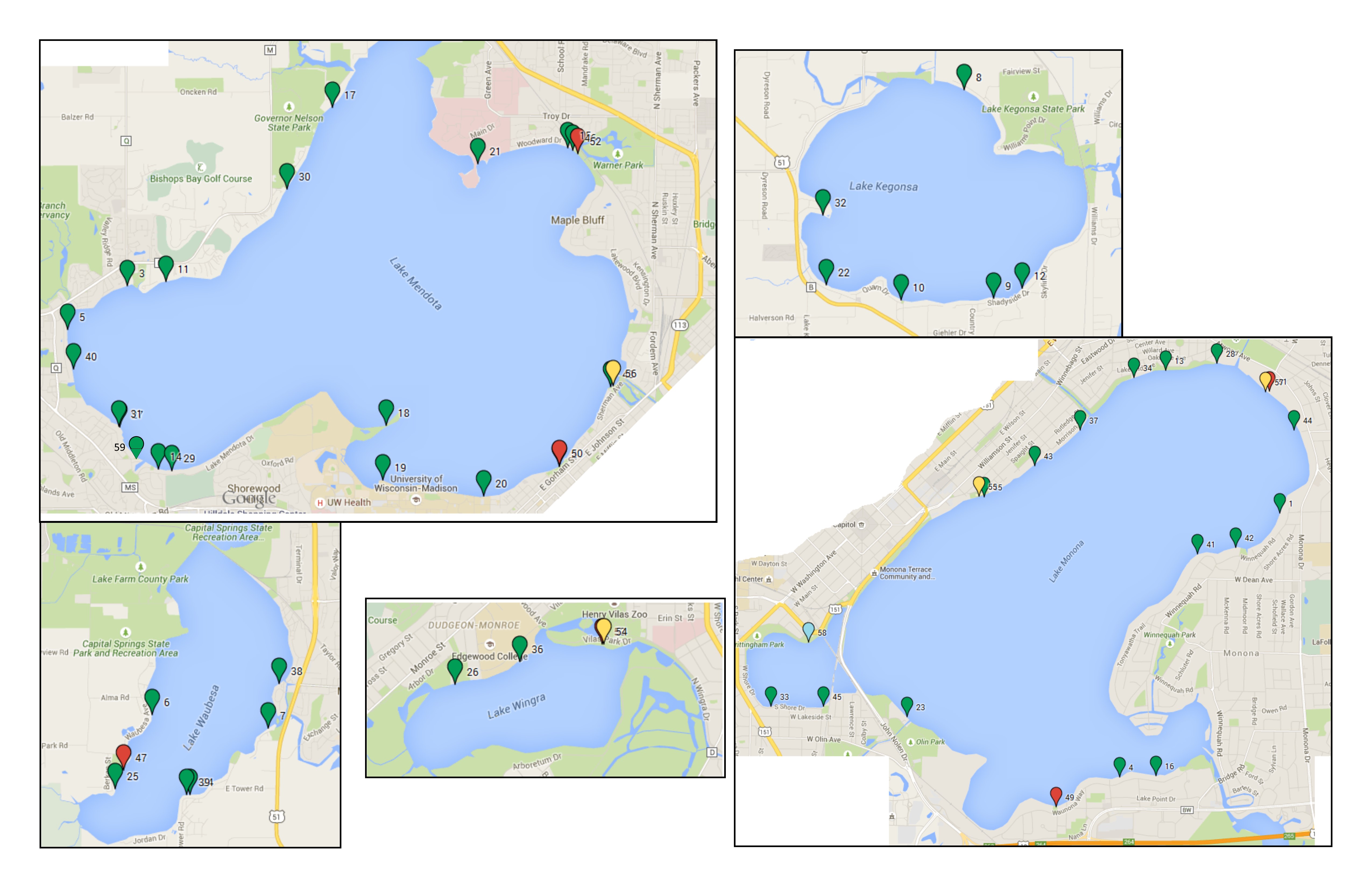 Clean Lakes Alliance will run a program to increase near-shore water quality monitoring in the Madison Lakes in 2015 to help with beach closure timeliness, and improve ability of the public to make decisions about swimming. They will recruit, train and equip lifeguards or volunteers monitor a minimum of 6 and up to a maximum of 16 public beaches, with a focus on once per week E. coli sampling. In addition, up to 44 citizen volunteers will do weekly end-of-pier assessments of turbidity, temperature and blue green algae presence. Samples will be collected and delivered to the city-county health lab. Data will be analyzed and shared with researchers at UW Madison who are interested in modeling algae blooms within near-shore areas, and made available to the public on a mobile-ready website. Also, a community presentation will be given at the end of the season to discuss findings and recommendations, and a final report, including raw data, will be submitted to the department.