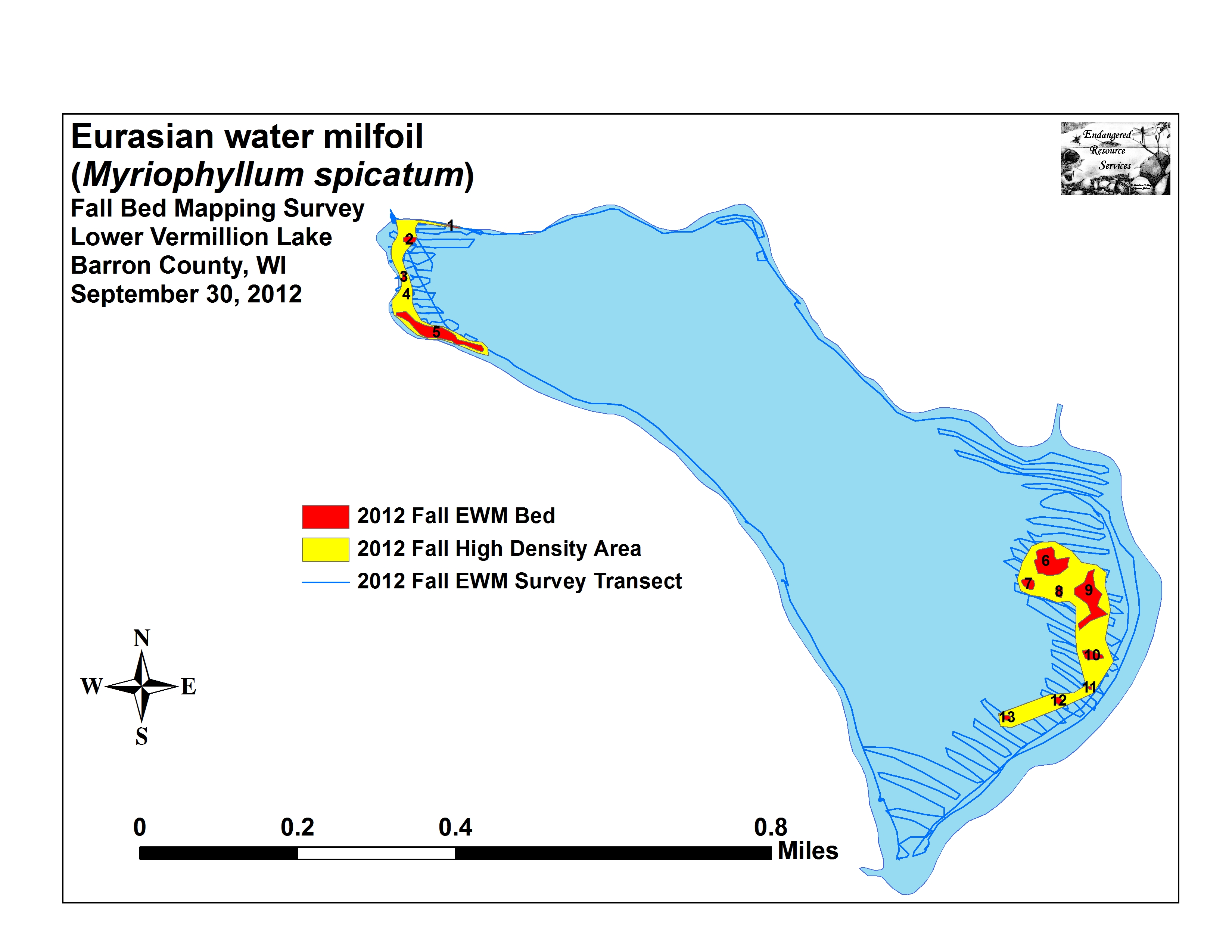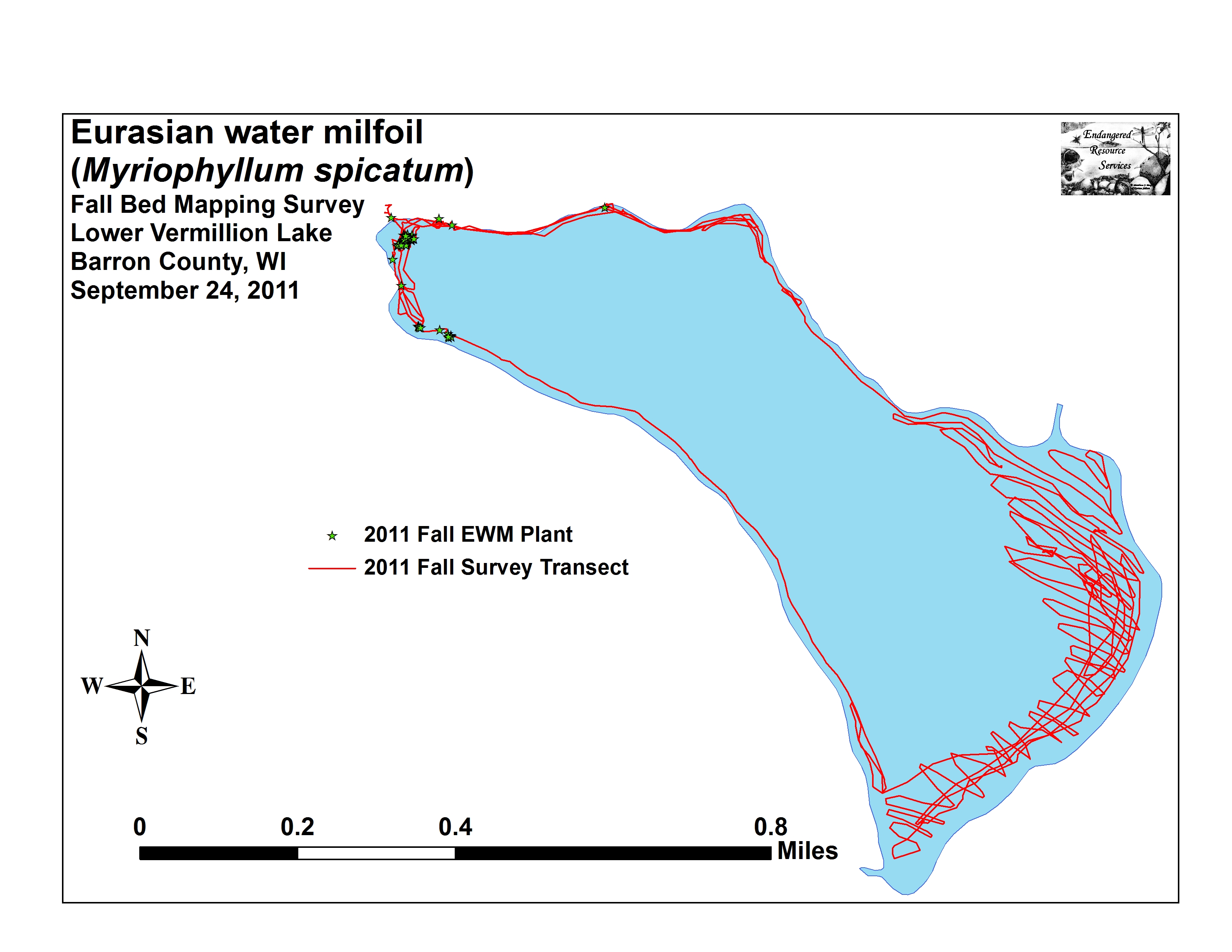 Vermillion Lakes Association is sponsoring a three-year Eurasian watermilfoil response project on Lower and Upper Vermillion Lakes, Barron County, to do the following activities: community information and education; Clean Boats Clean Waters watercraft inspections; aquatic plant survey and management plan update; and Eurasian watermilfoil management and monitoring. Specifically the deliverables associated with this project include: 1) A project report summarizing information/education, management, and monitoring activities; 2) Clean Boats Clean Waters data collection summary. Data collected must include those data required as part of the CBCW program and must be entered in the statewide database to be eligible for grant reimbursement; 3) Pre-post treatment monitoring; 4) Management Plan update, as necessary.