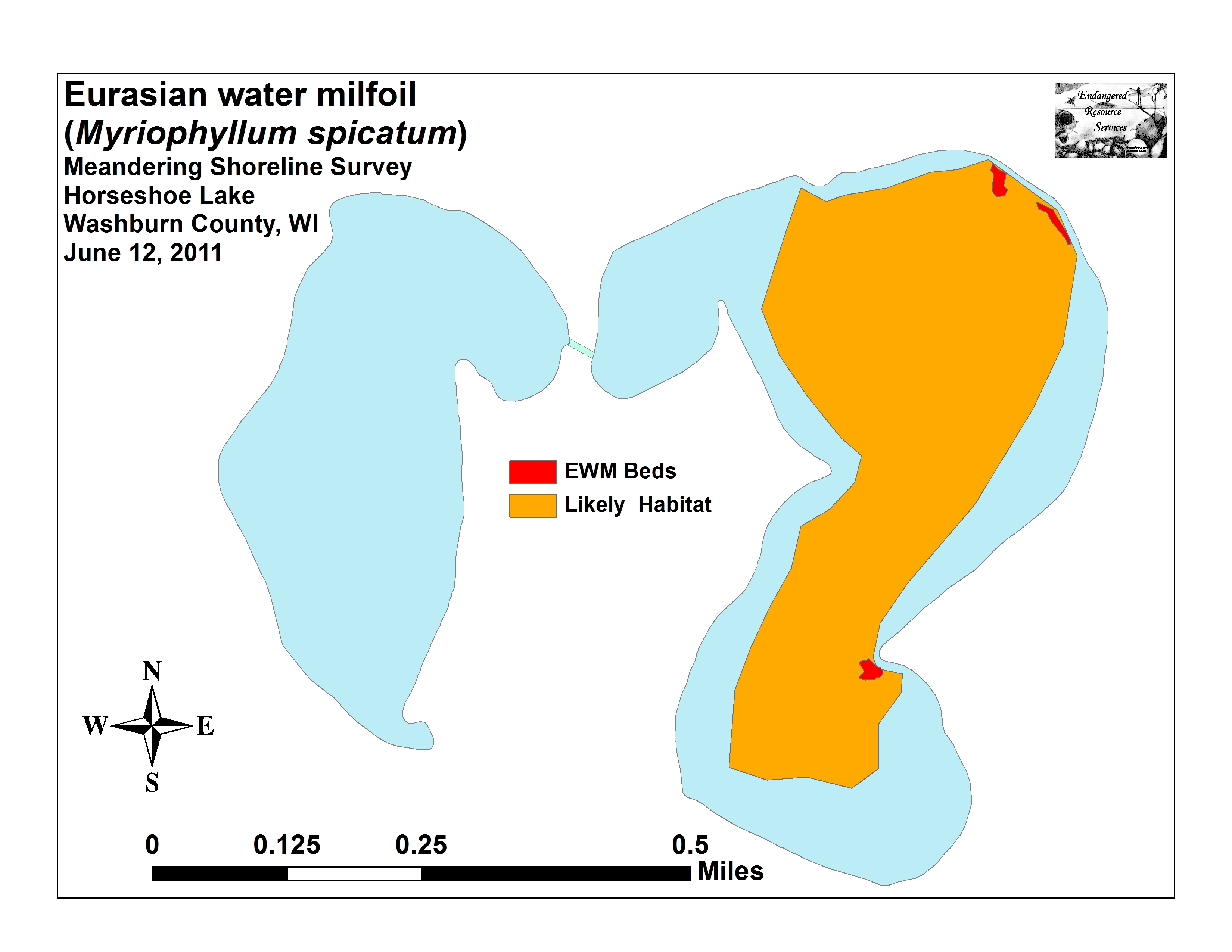 The Horseshoe Lake Property Association is sponsoring a four (4) year Early Detection and Response project that will monitor and manage a pioneering population of Eurasian watermilfoil in Horseshoe Lake. Project activities include: 1) Point-intercept survey(s) and seasonal and/or pre- and post-treatment aquatic plant monitoring following guidelines provided by the Department; 2) Chemical treatment and/or SCUBA and manual removal of Eurasian watermilfoil; 3) Information and Education Program. Special condition: WDNR\2019s Aquatic Plant Management in Wisconsin guidance shall be followed for point-intercept survey monitoring, pre/post treatment monitoring, and aquatic plant management plan development unless otherwise approved by the Department. Specific deliverables for this project include annual progress and final reports of monitoring and management activities, including aquatic plant survey spreadsheets and pre/post treatment monitoring, and any educational materials developed.
