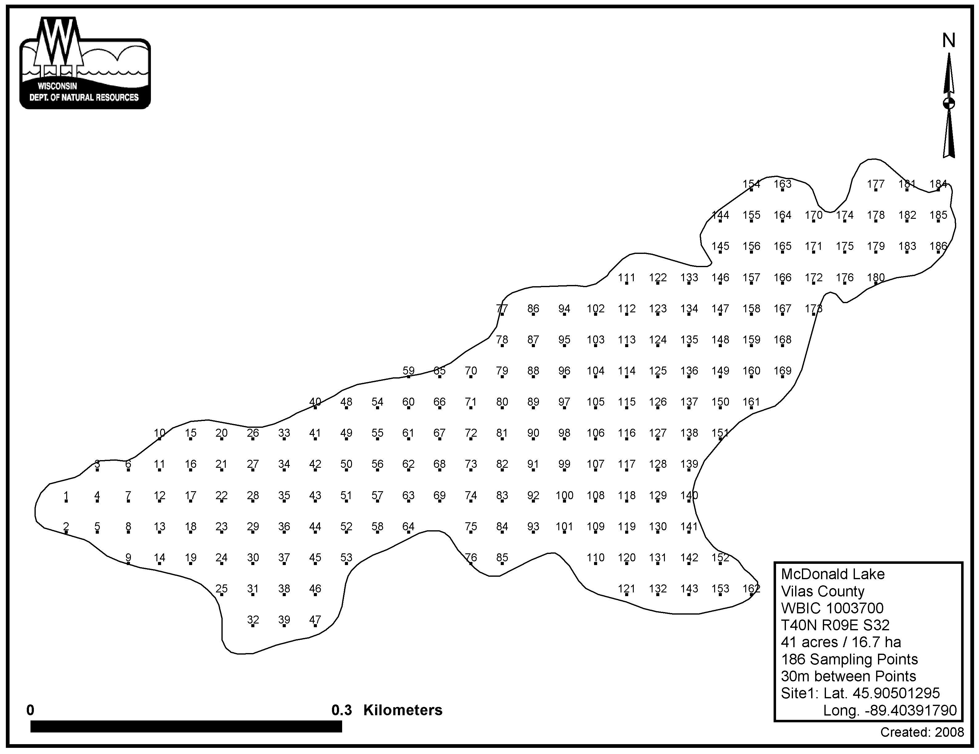 McDonald Lake, Vilas County - Aquatic Plant Sampling Map (30 mpts)