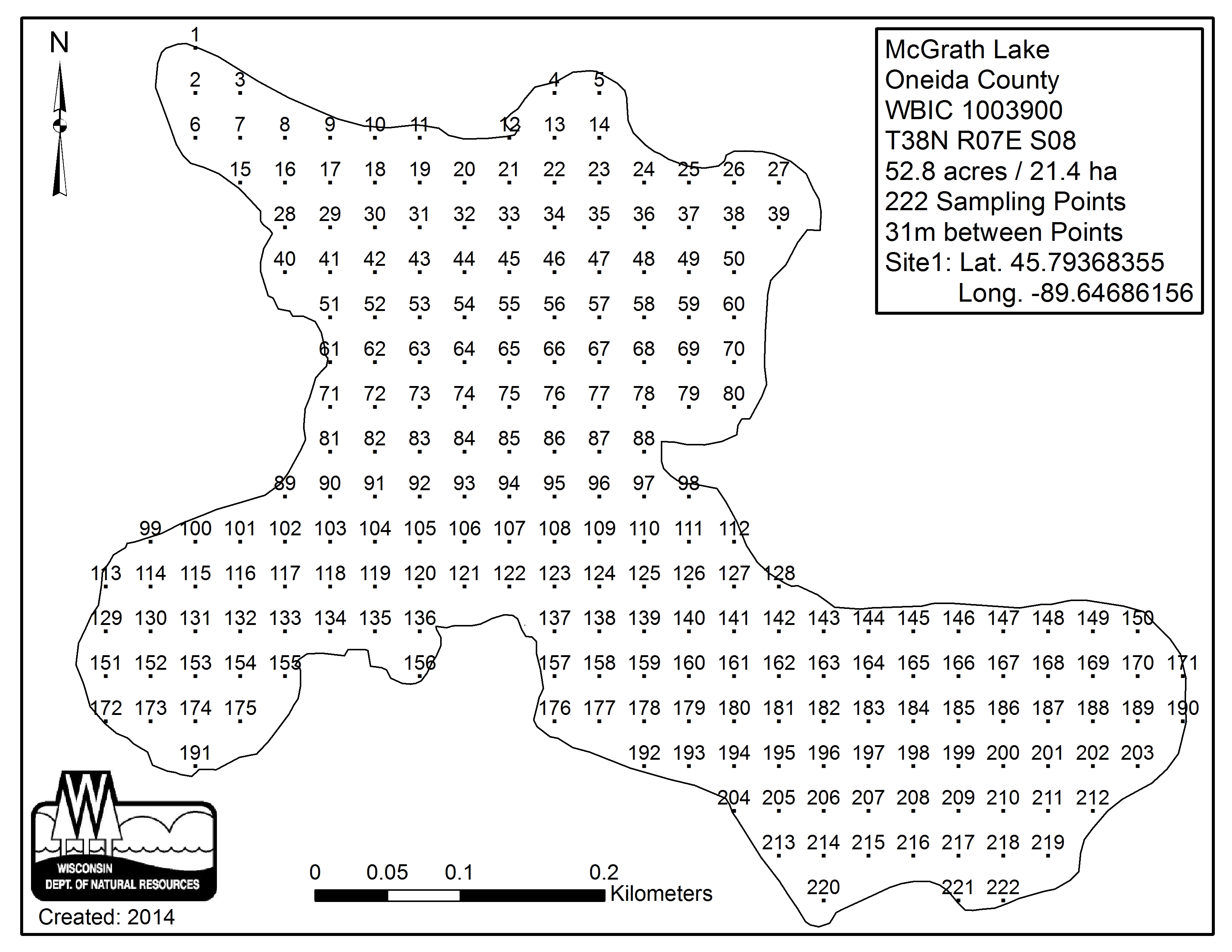 McGrath Lake, Oneida County - Aquatic Plant Sampling Map (31 mpts)