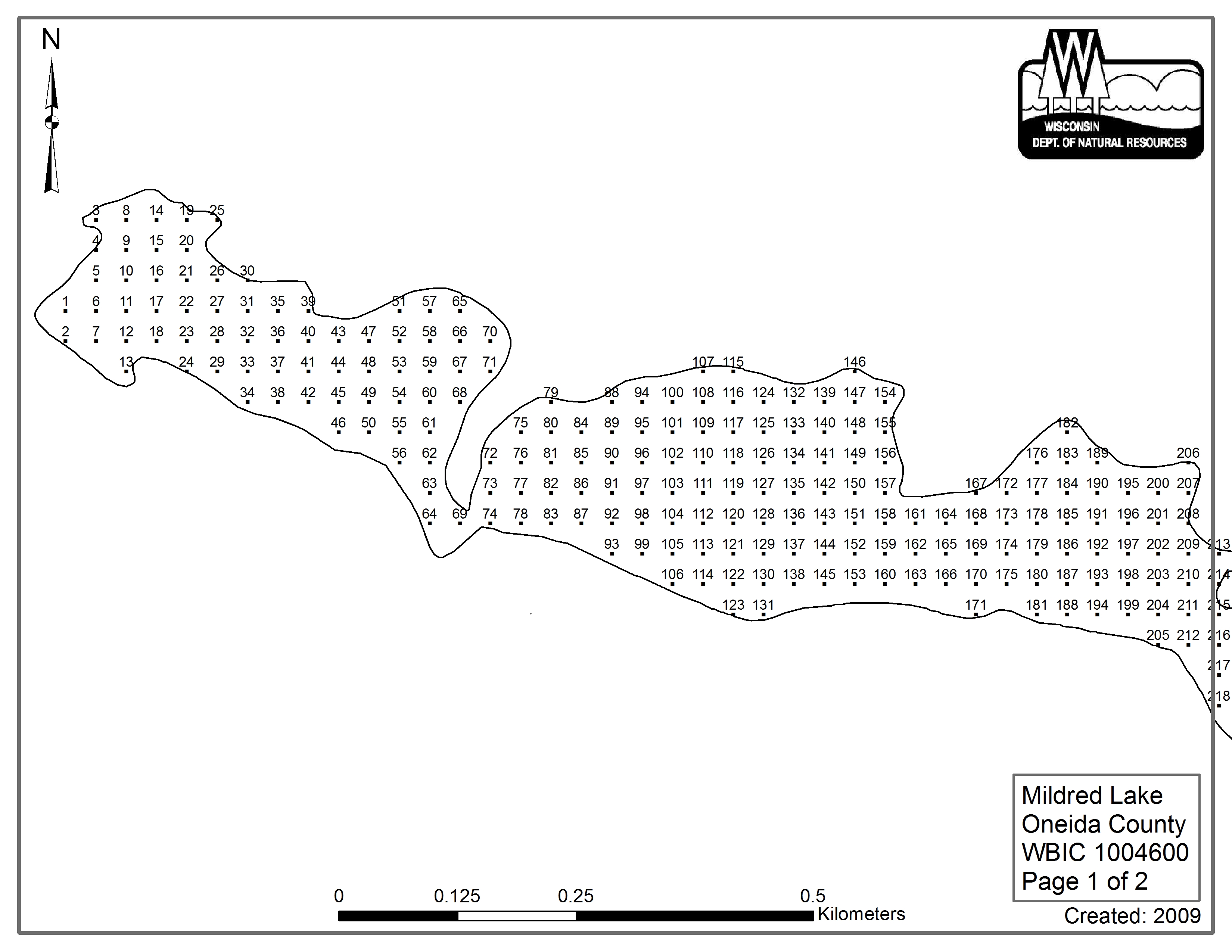 Mildred Lake, Oneida County - Aquatic Plant Sampling Map (2)(32 mpts)