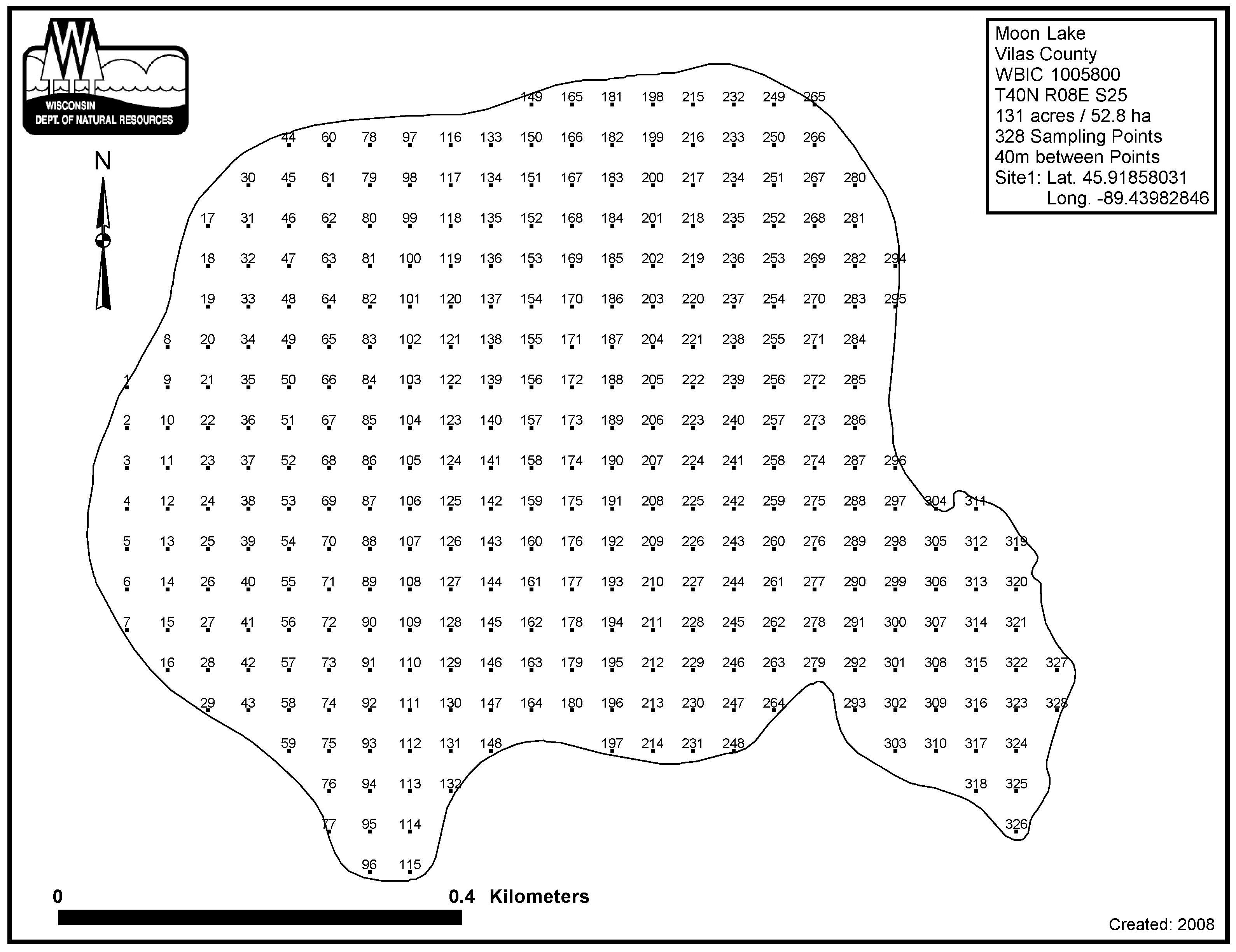 Moon Lake, Vilas County - Aquatic Plant Sampling Map (40 mpts)