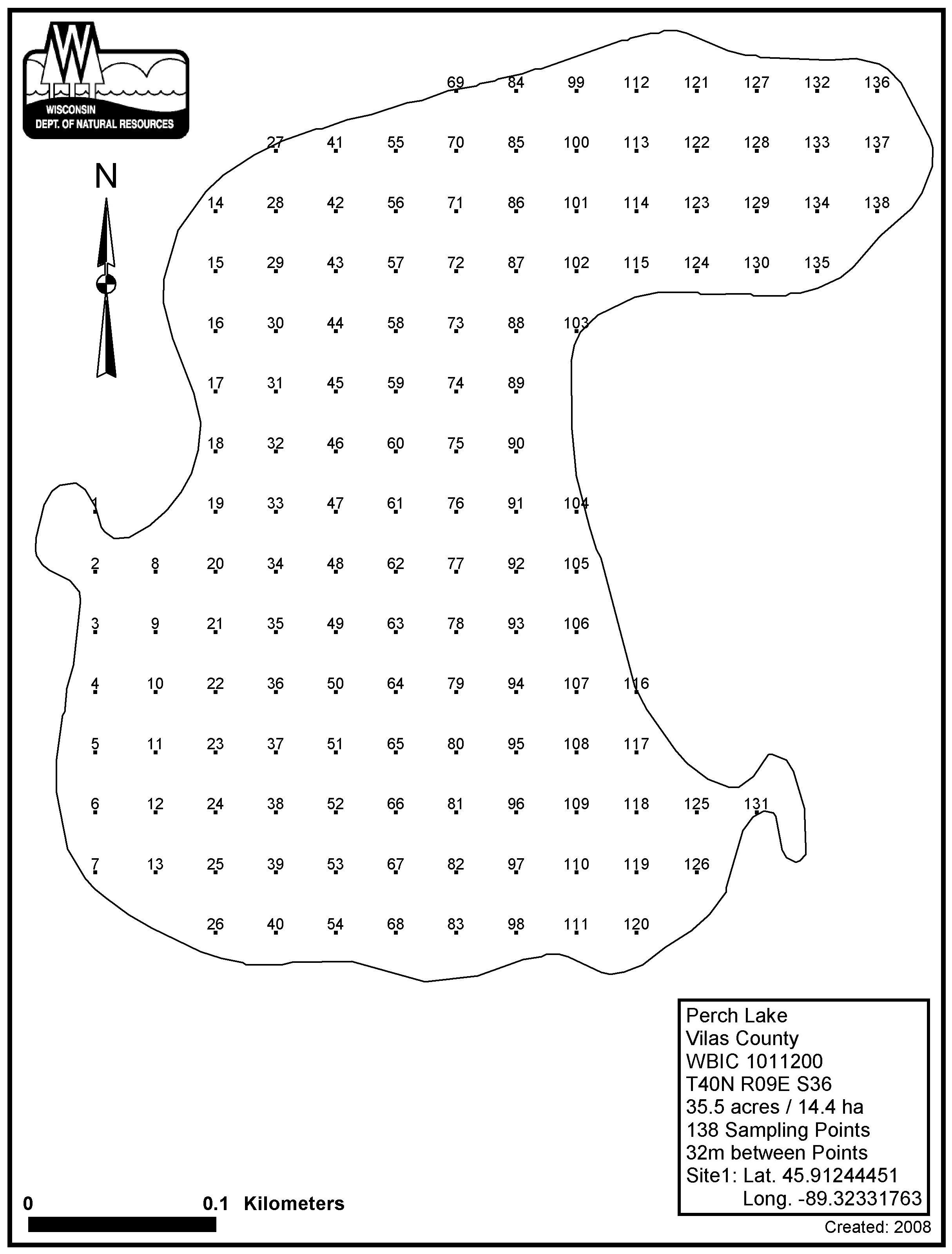 Perch Lake, Vilas County - Aquatic Plant Sampling Map (32 mpts)
