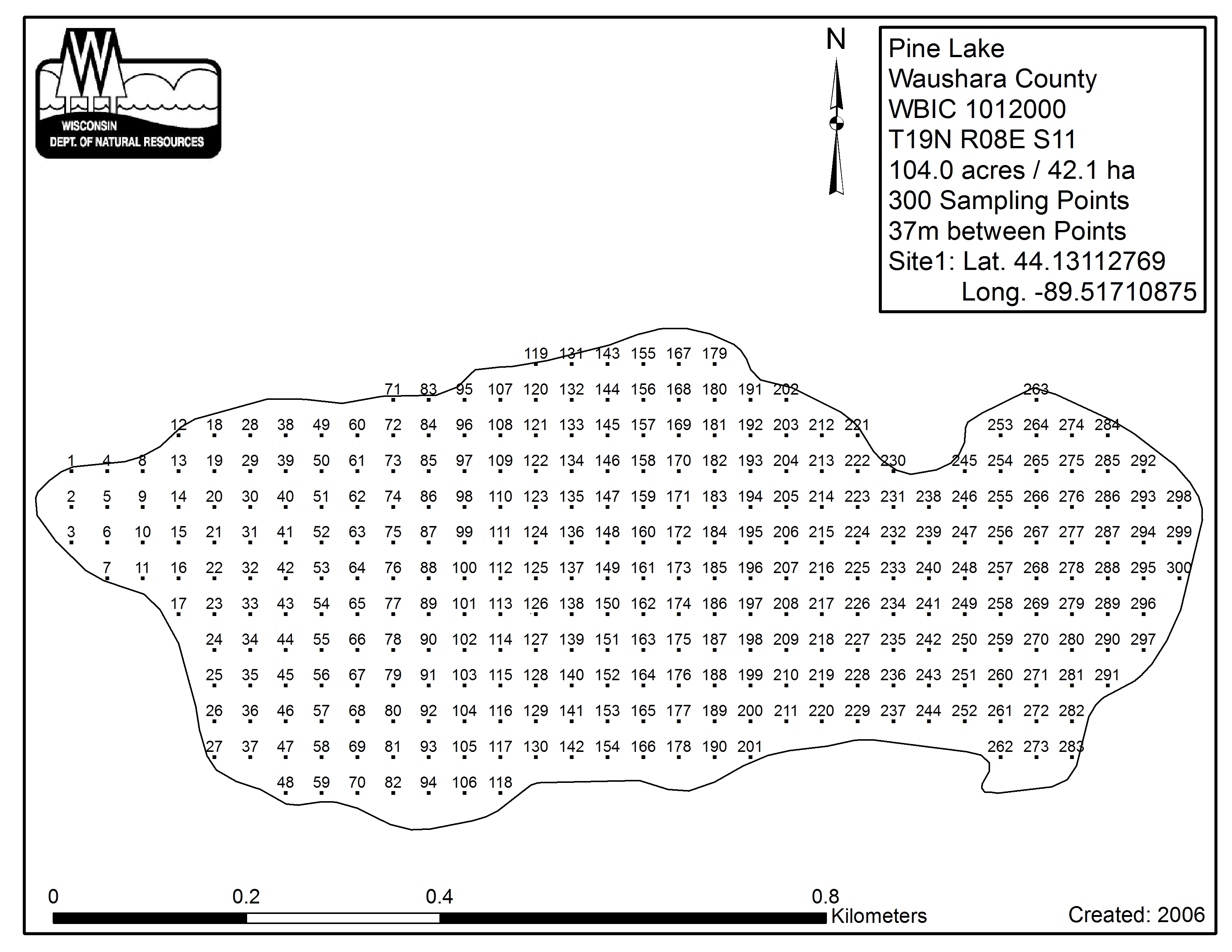 Pine Lake, Waushara County (1012000) - Aquatic Plant Sampling Map (37 mpts)