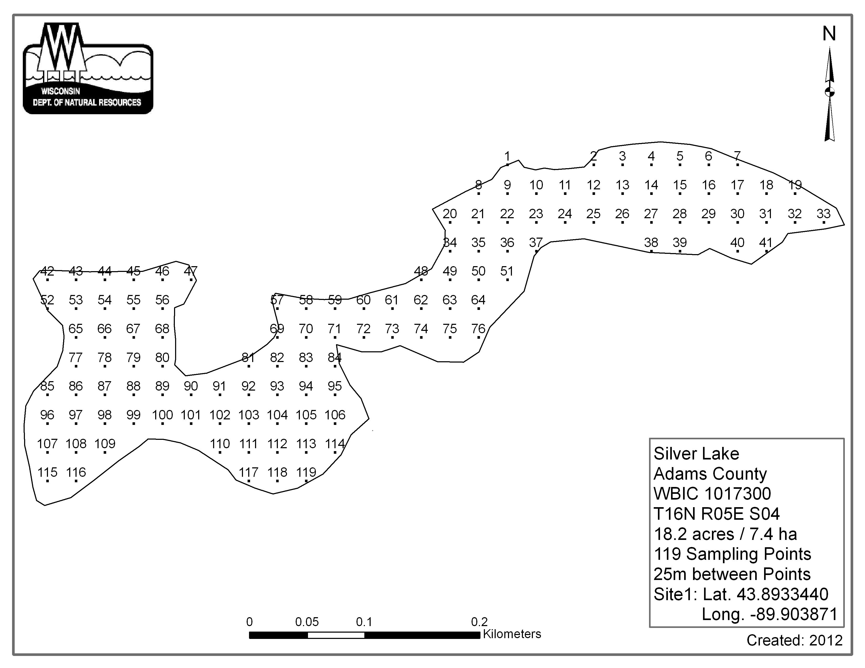 Silver Lake, Adams County - Aquatic Plant Sampling Map (25 mpts)