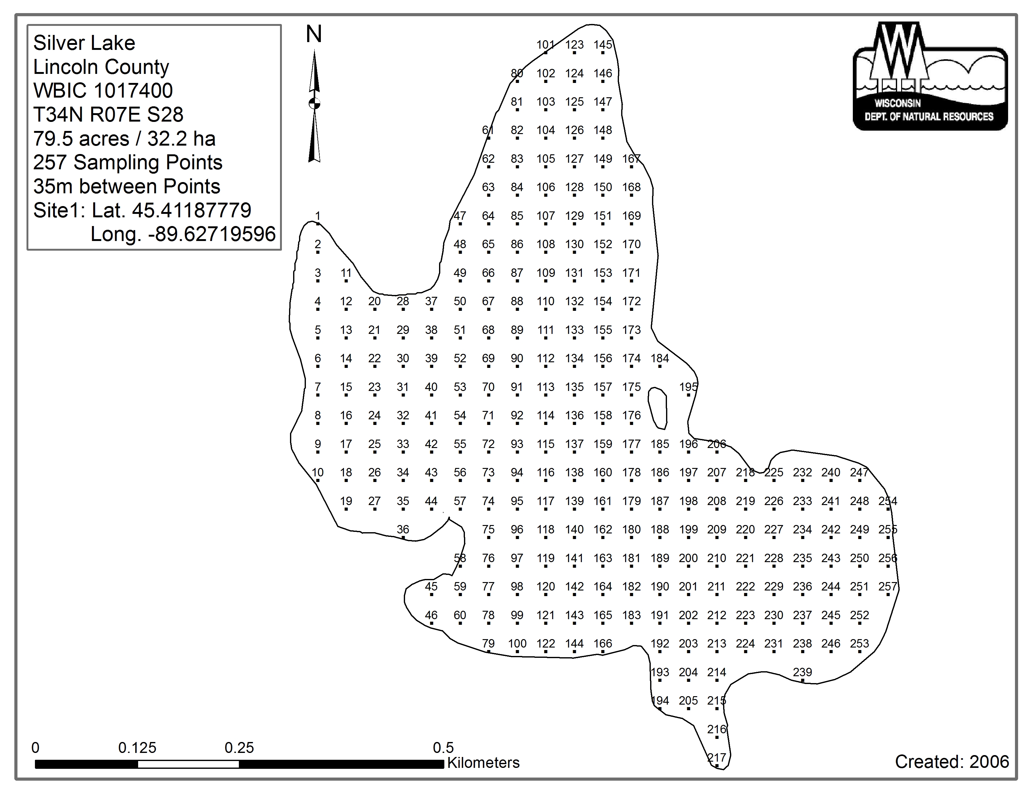 Silver Lake, Lincoln County - Aquatic Plant Sampling Map (35 mpts)