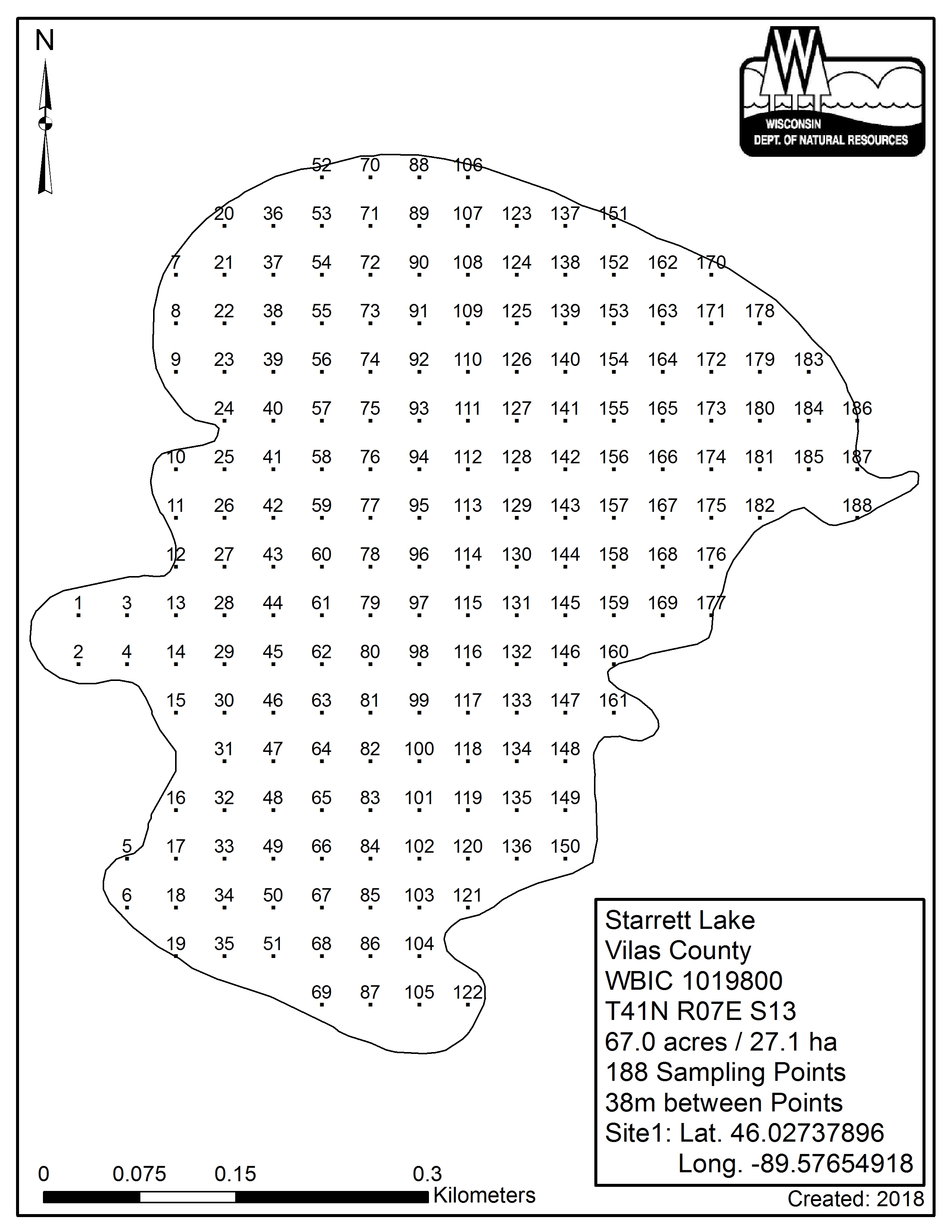 Starrett Lake, Vilas County - Aquatic Plant Sampling Map (38 mpts)
