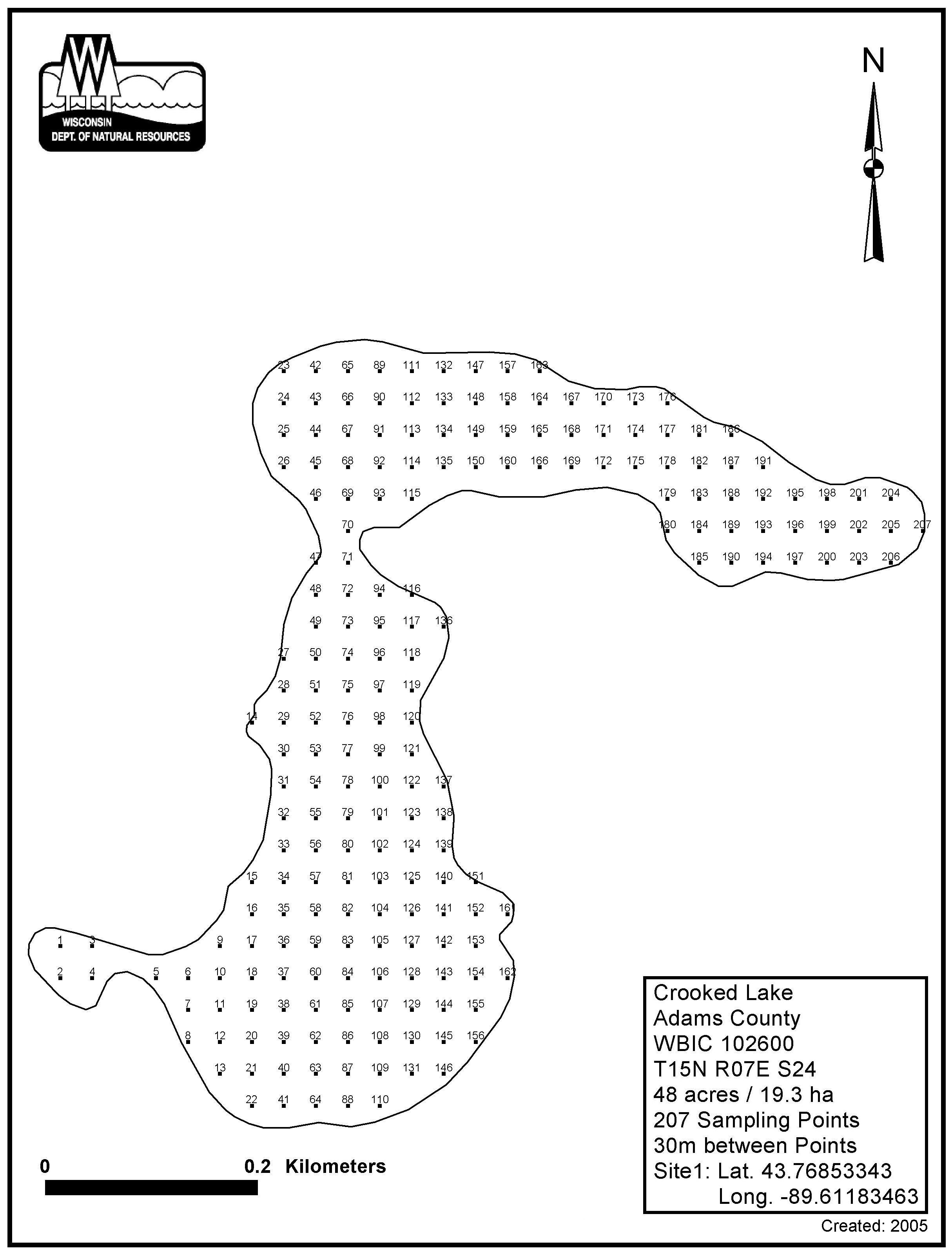 Crooked Lake, Adams County - Aquatic Plant Sampling Map (30 mpts)