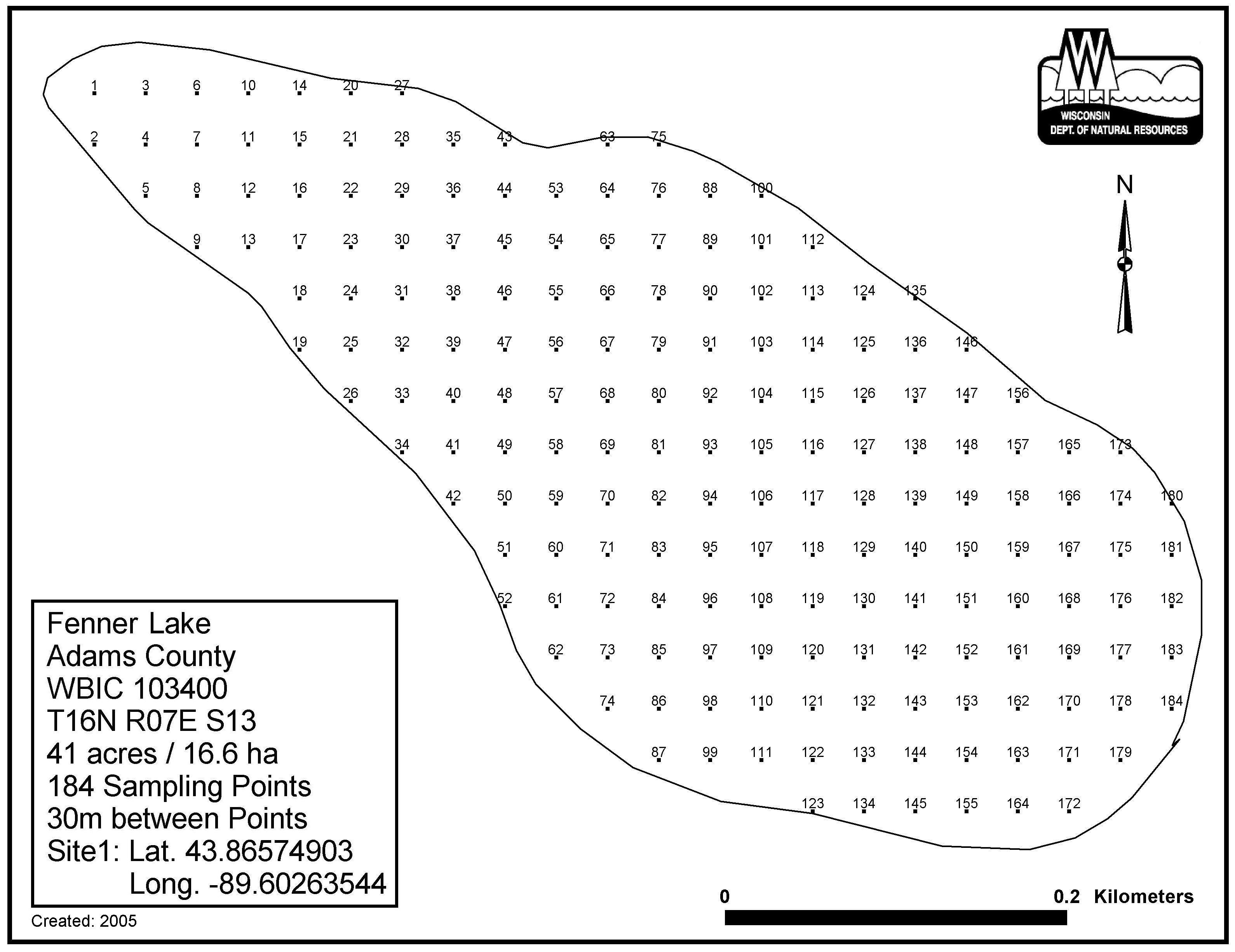 Fenner Lake, Adams/Marquette County - Aquatic Plant Sampling Map (30 mpts)
