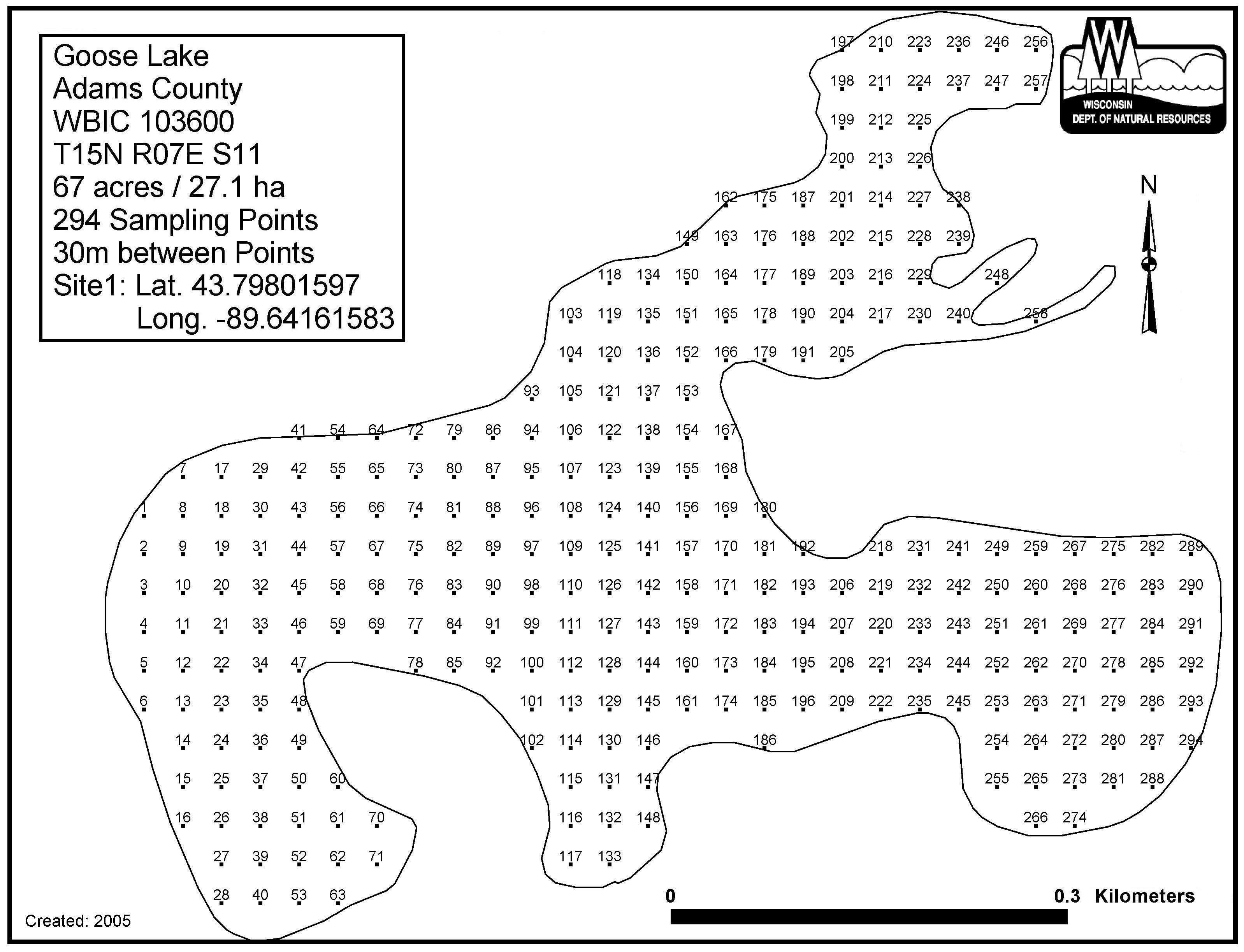 Goose Lake, Adams County - Aquatic Plant Sampling Map (30 mpts)