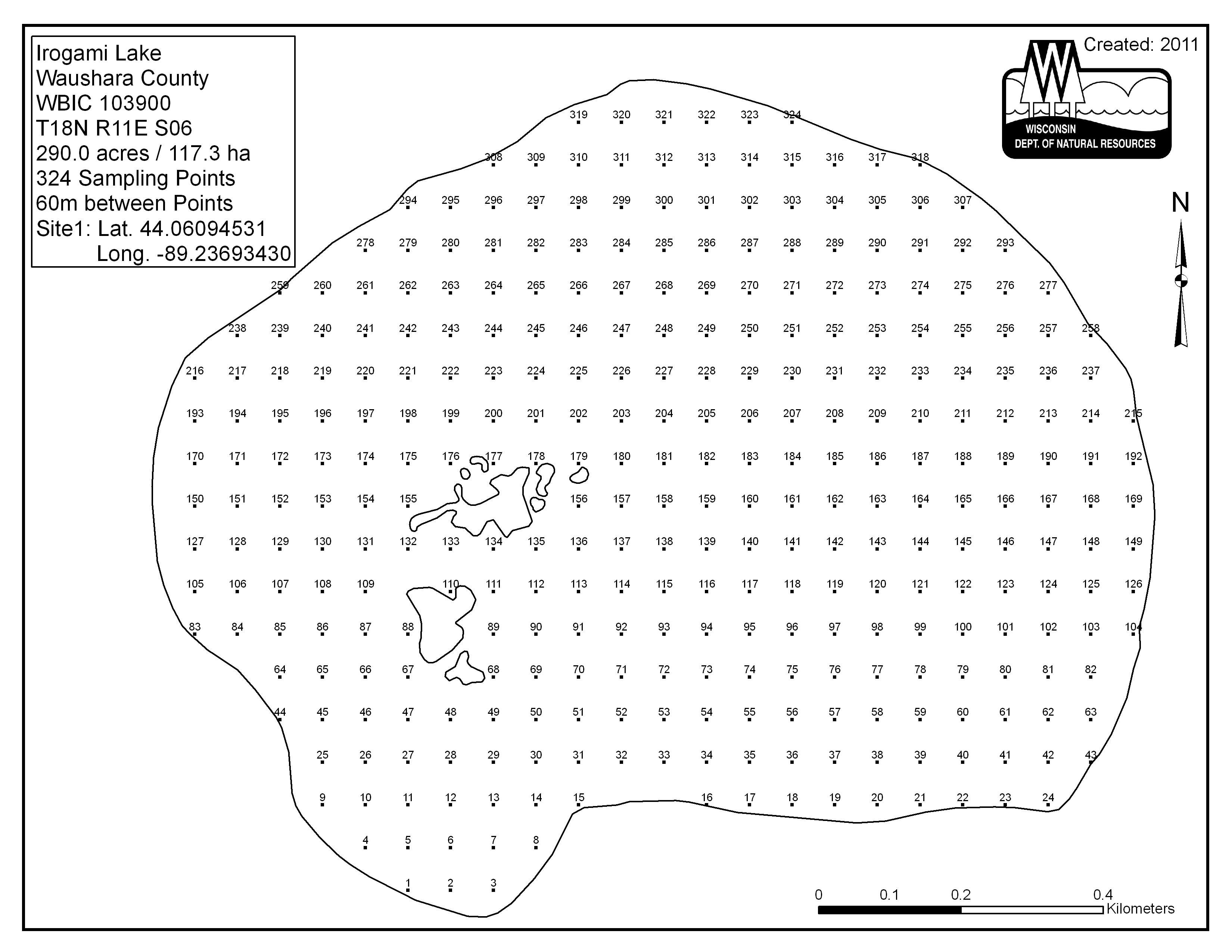 Irogami Lake, Waushara County - Aquatic Plant Sampling Map (60 mpts)