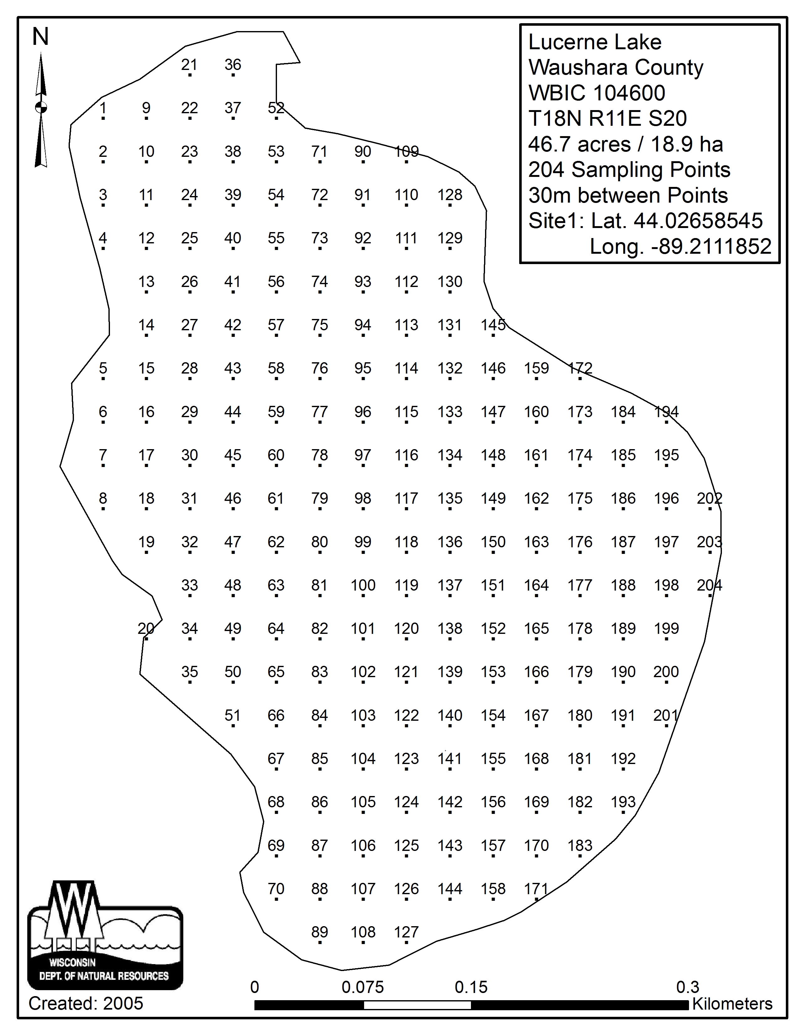 Lake Lucerne, Waushara County - Aquatic Plant Sampling Map (30 mpts)