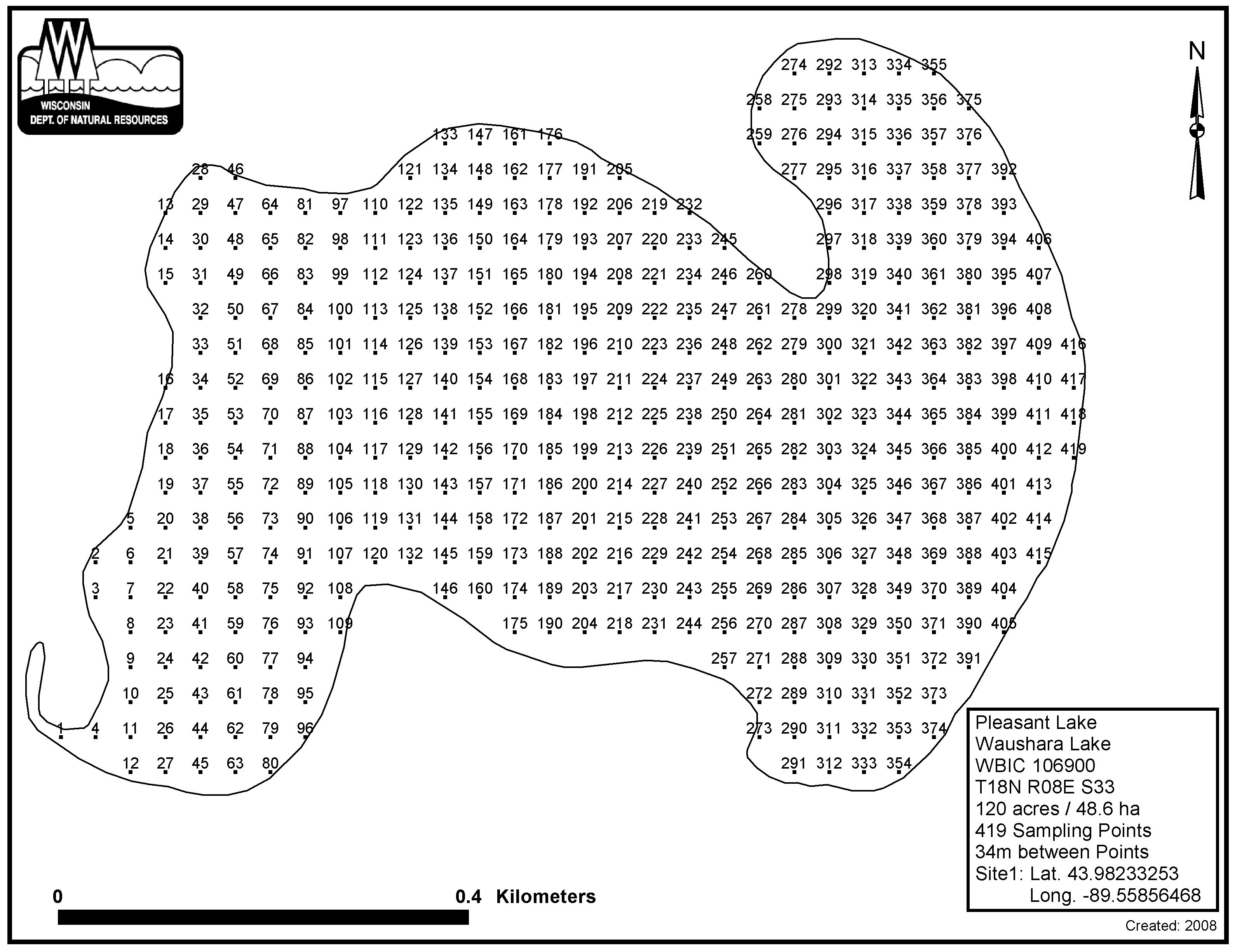 Pleasant Lake, Waushara County - Aquatic Plant Sampling Map (34 mpts)