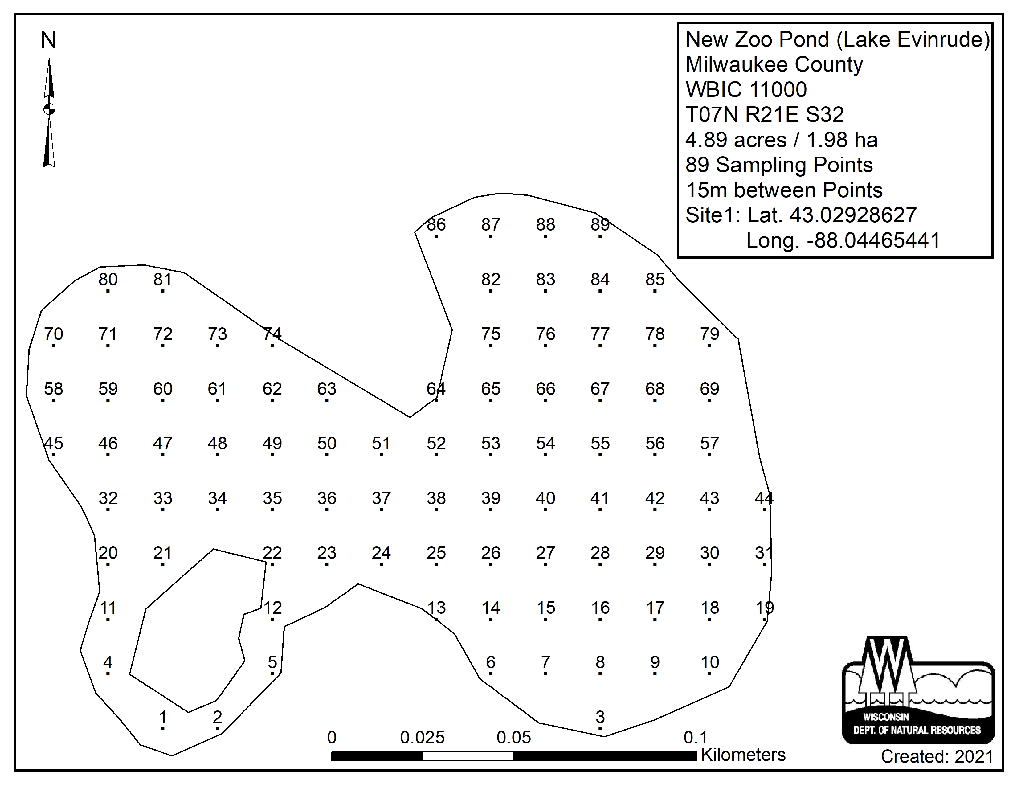New Zoo Pond, Milwaukee County - Aquatic Plant Sampling Map (15 mpts)