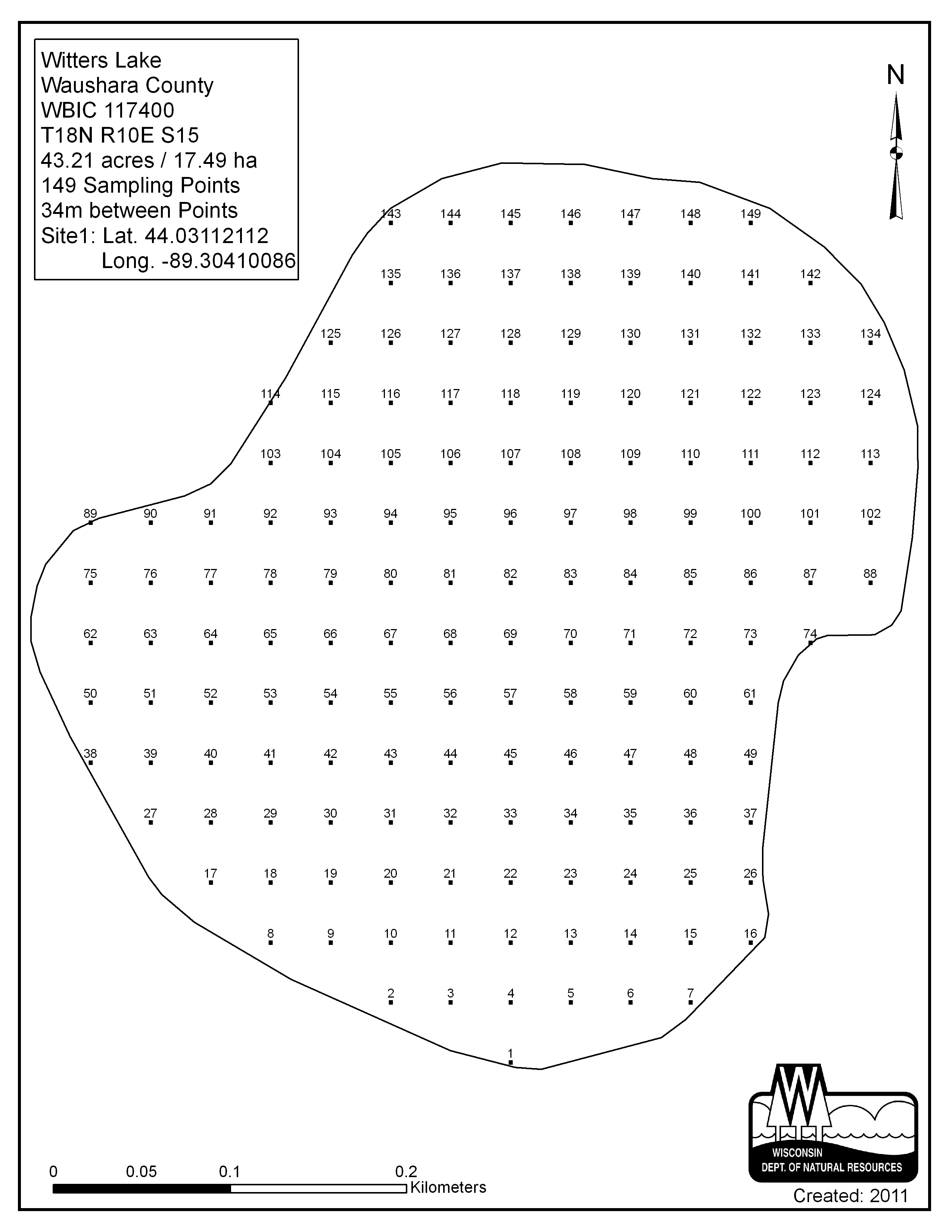 Witters Lake, Waushara County - Aquatic Plant Sampling Map (34 mpts)