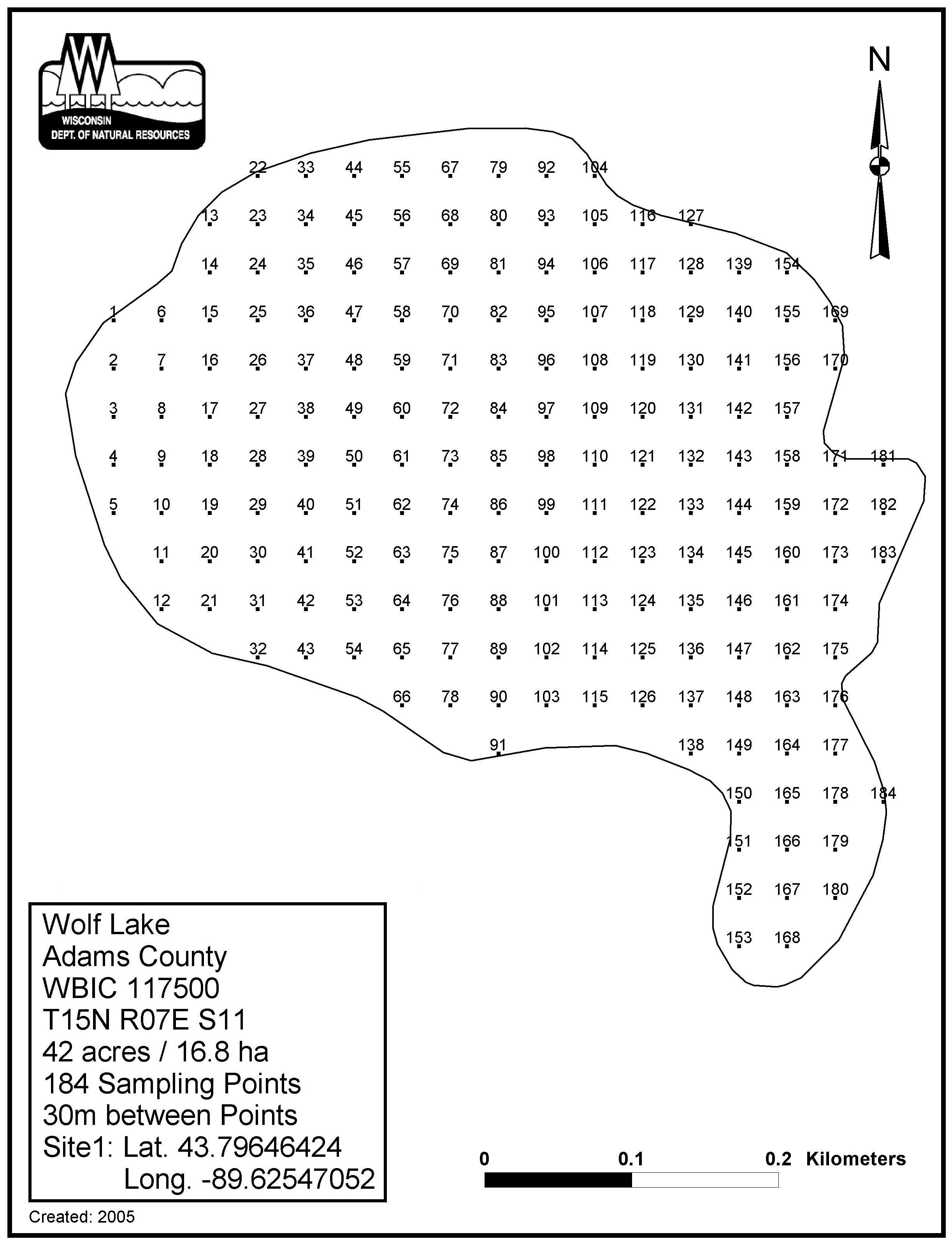 Wolf Lake, Adams County - Aquatic Plant Sampling Map (30 mpts)
