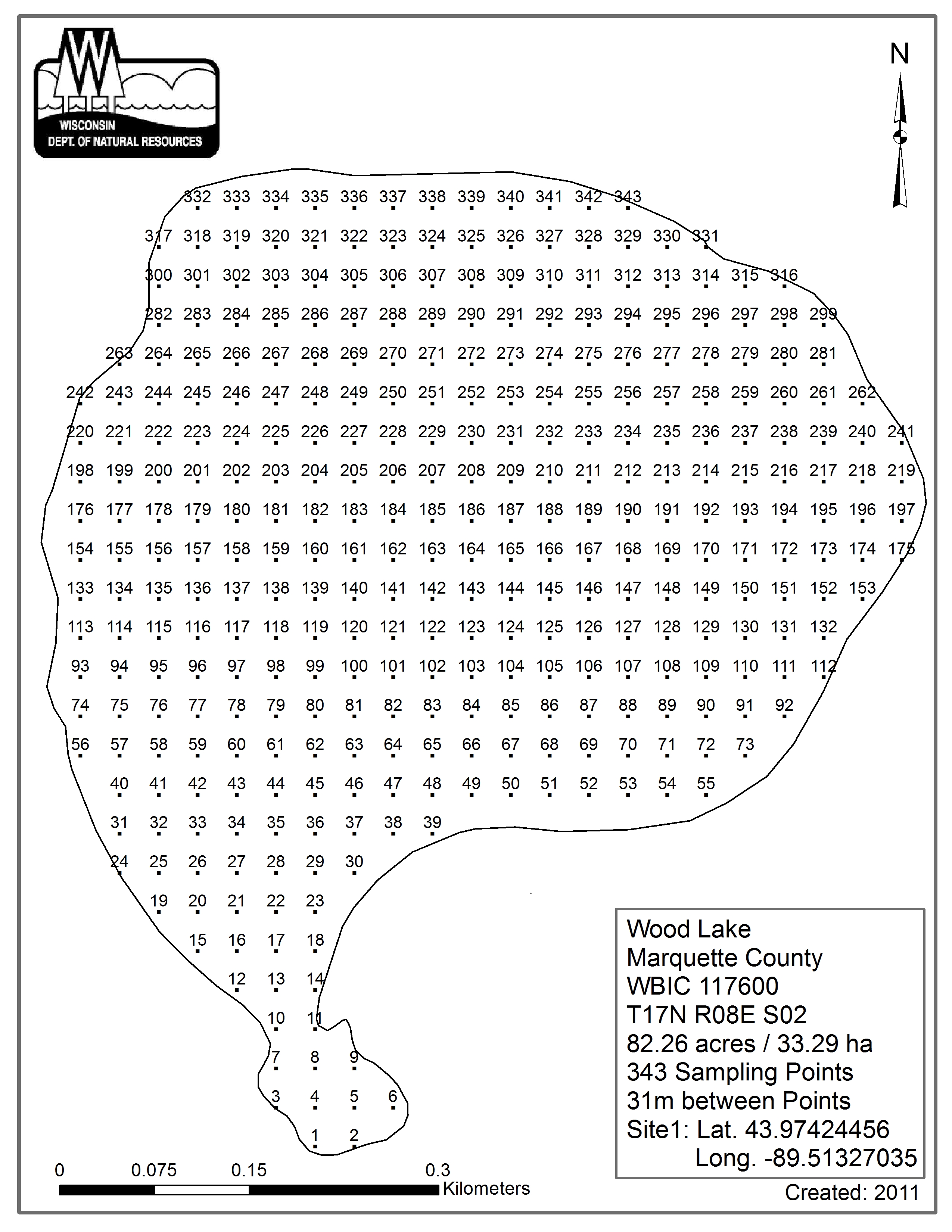 Wood Lake, Marquette County - Aquatic Plant Sampling Map (31 mpts)