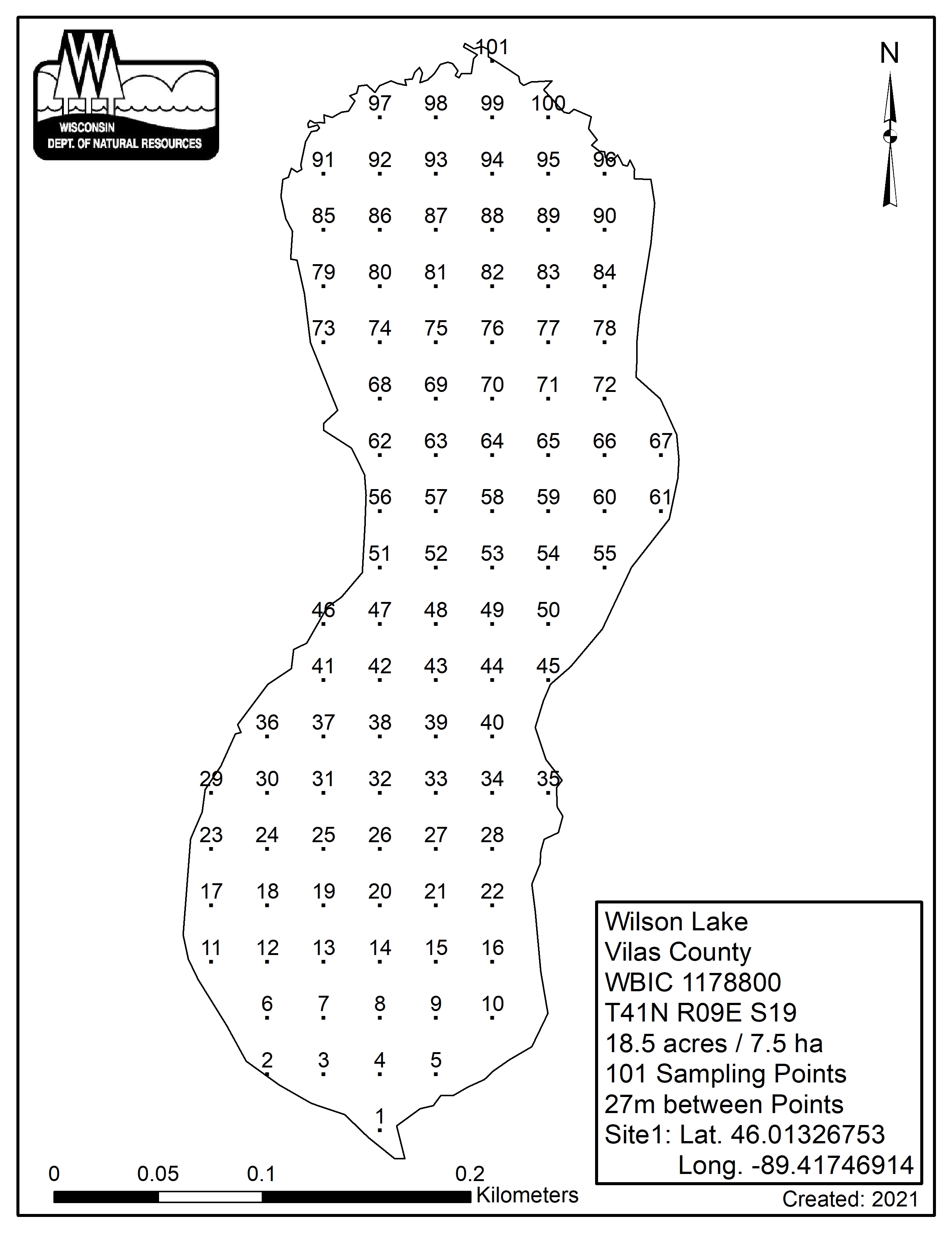 Wilson Lake, Vilas County - Aquatic Plant Sampling Map (27 mpts)