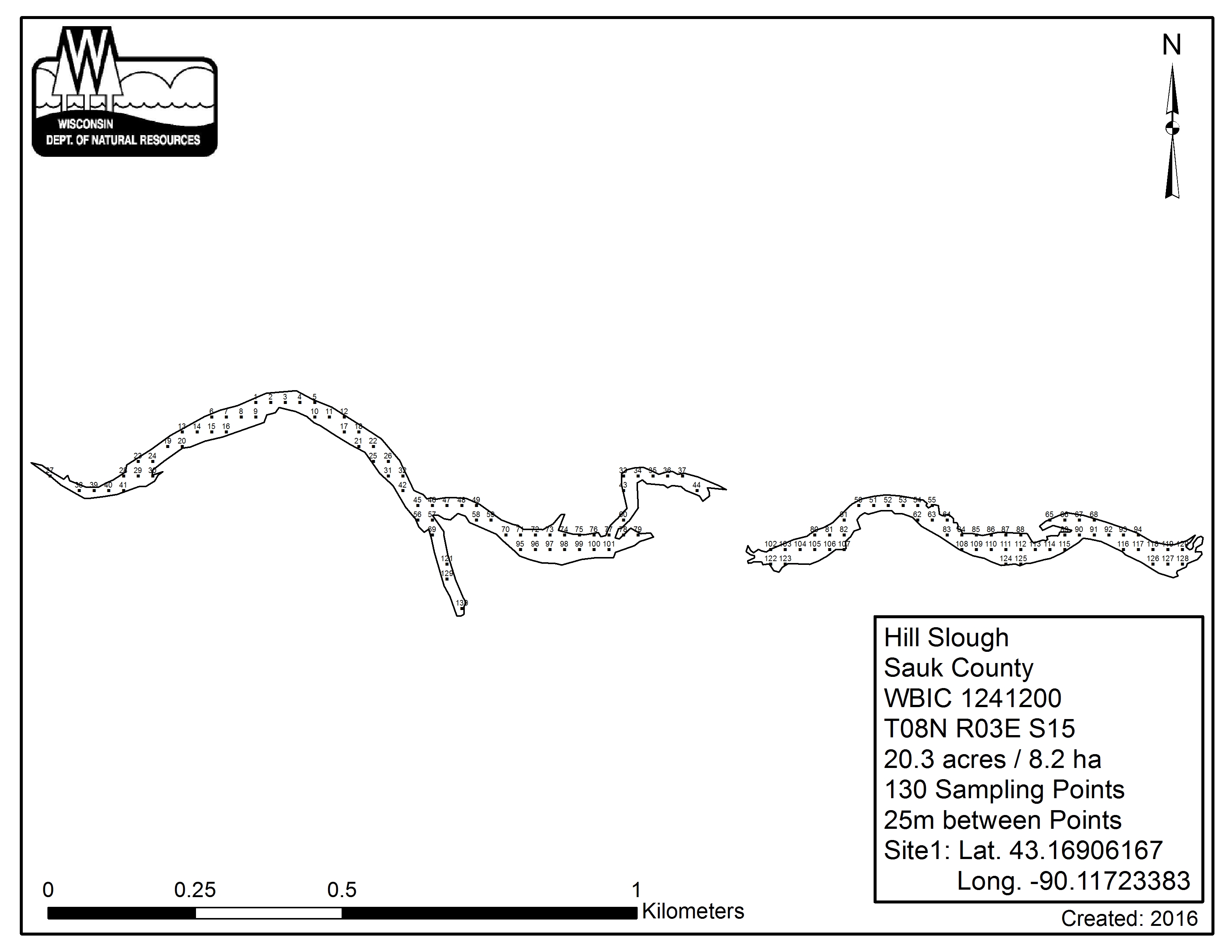 Hill Slough, Sauk County - Aquatic Plant Sampling Map (1)(25 mpts)