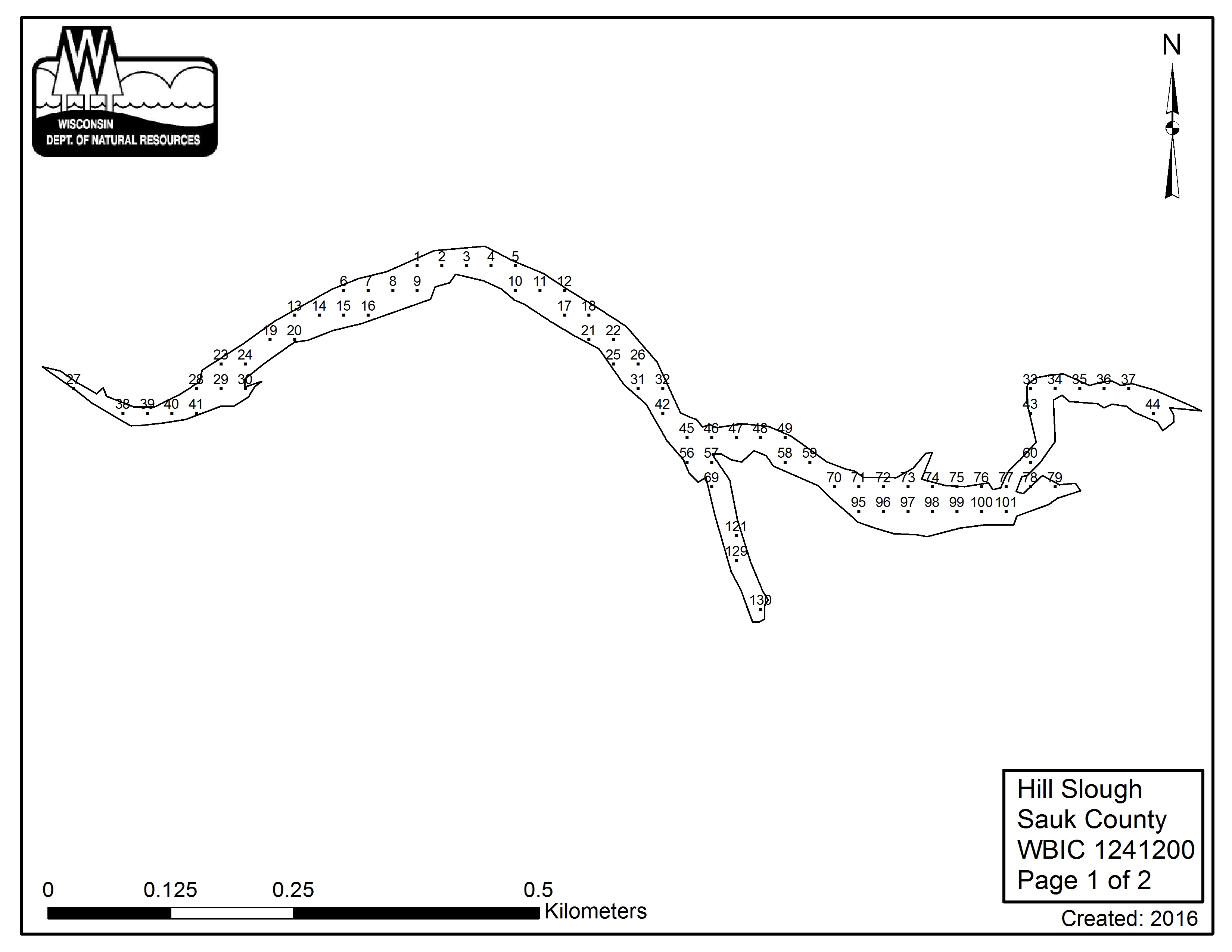 Hill Slough, Sauk County - Aquatic Plant Sampling Map (2)(25 mpts)
