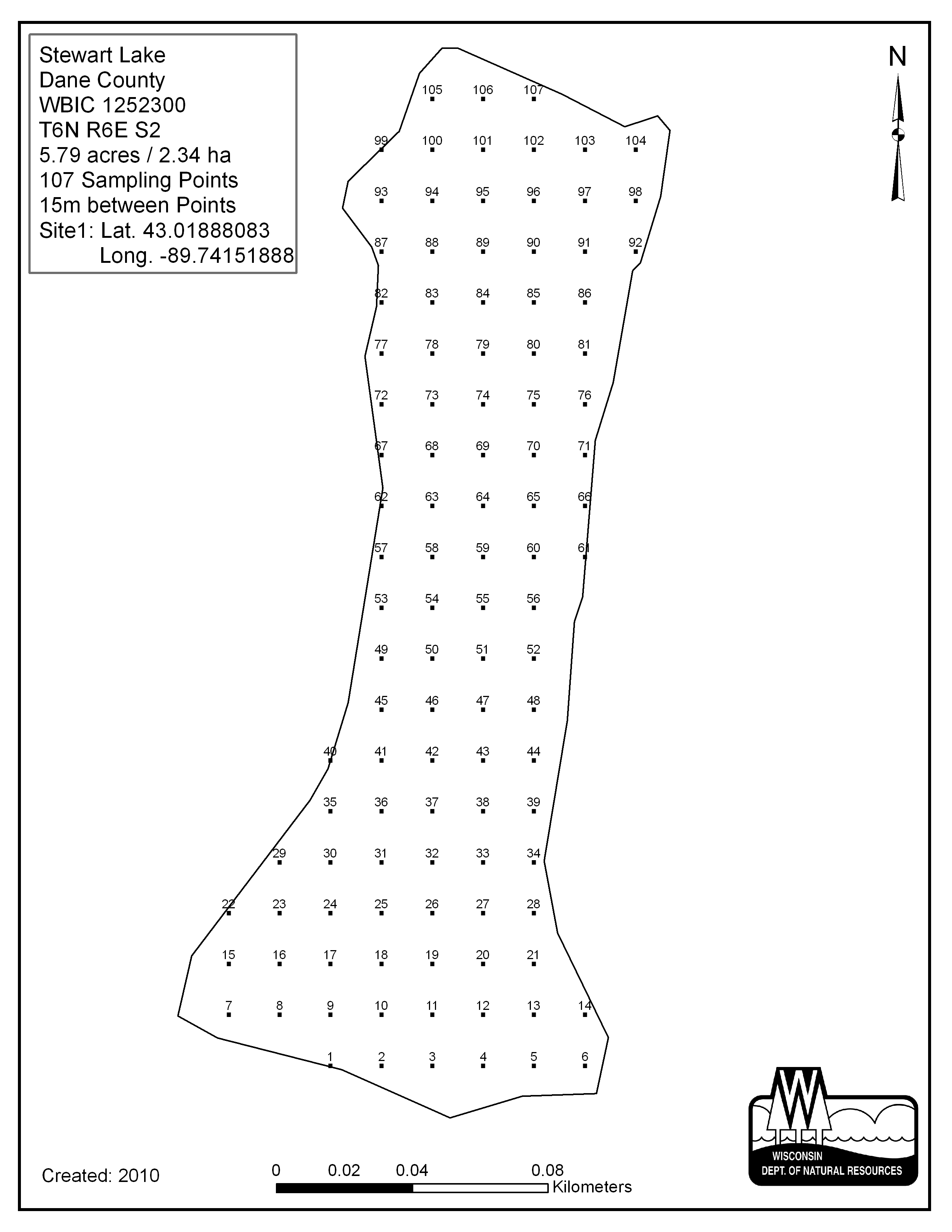 Stewart Lake, Dane County - Aquatic Plant Sampling Map (15 mpts)