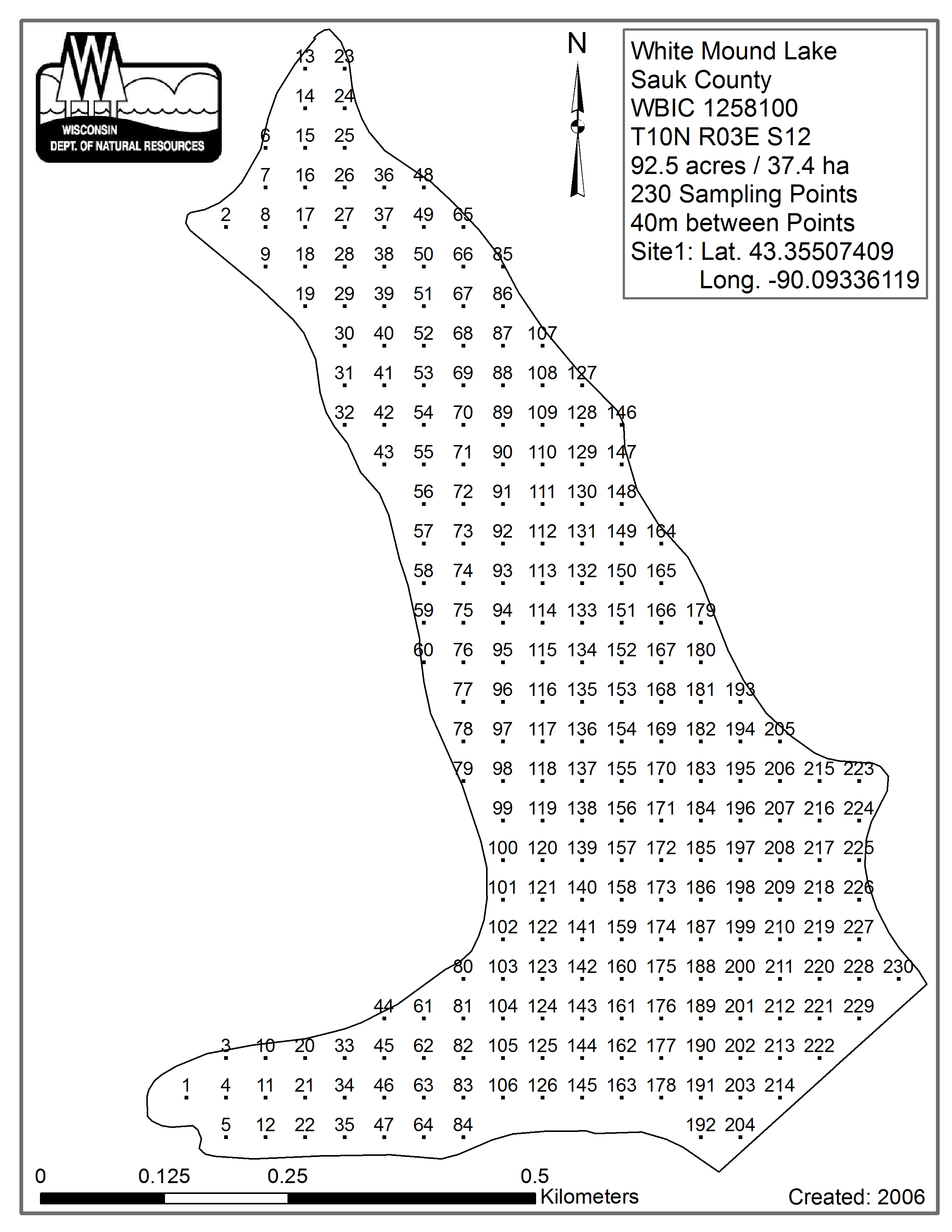 White Mound Lake, Sauk County - Aquatic Plant Sampling Map (40 mpts)