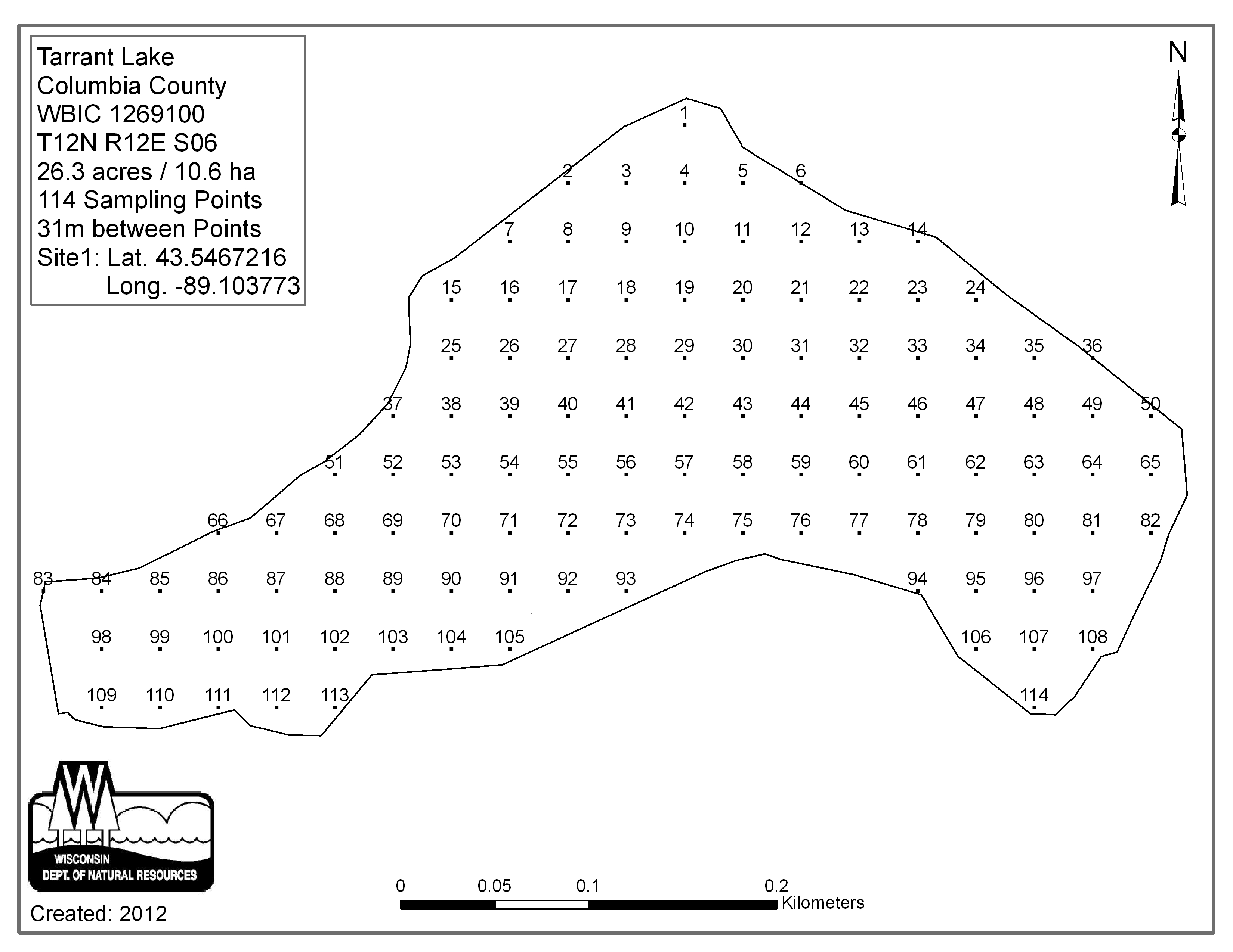 Tarrant Lake, Columbia County - Aquatic Plant Sampling Map (31 mpts)