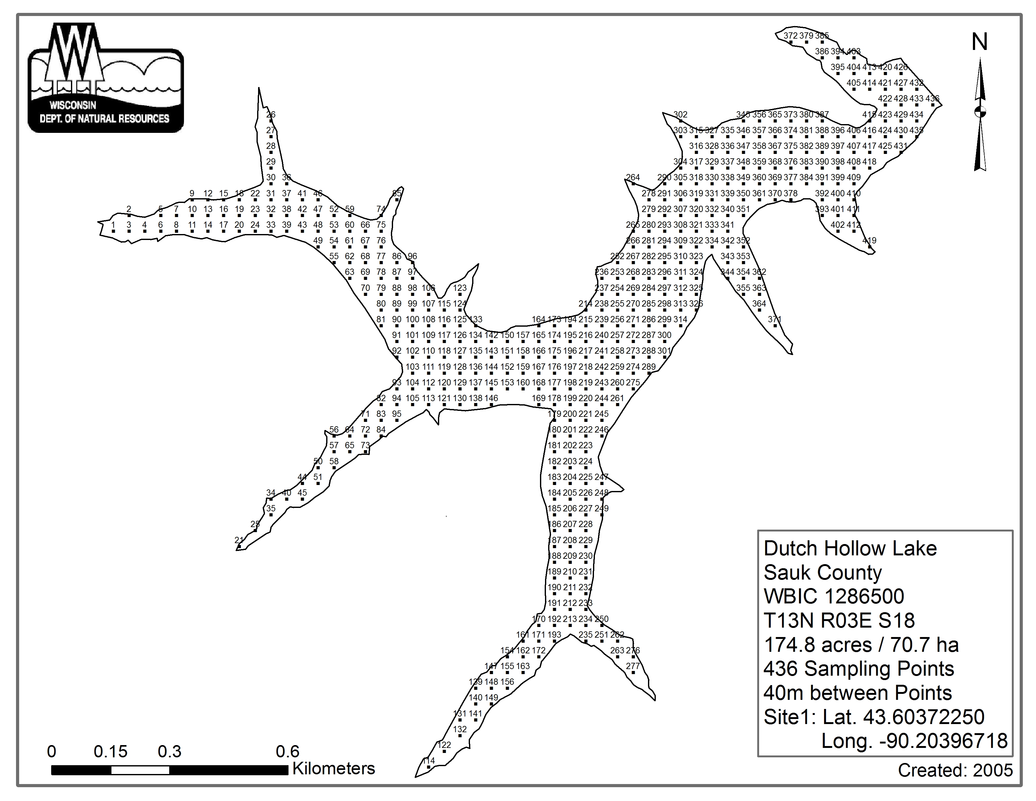 Dutch Hollow Lake, Sauk County - Aquatic Plant Sampling Map (40 mpts)