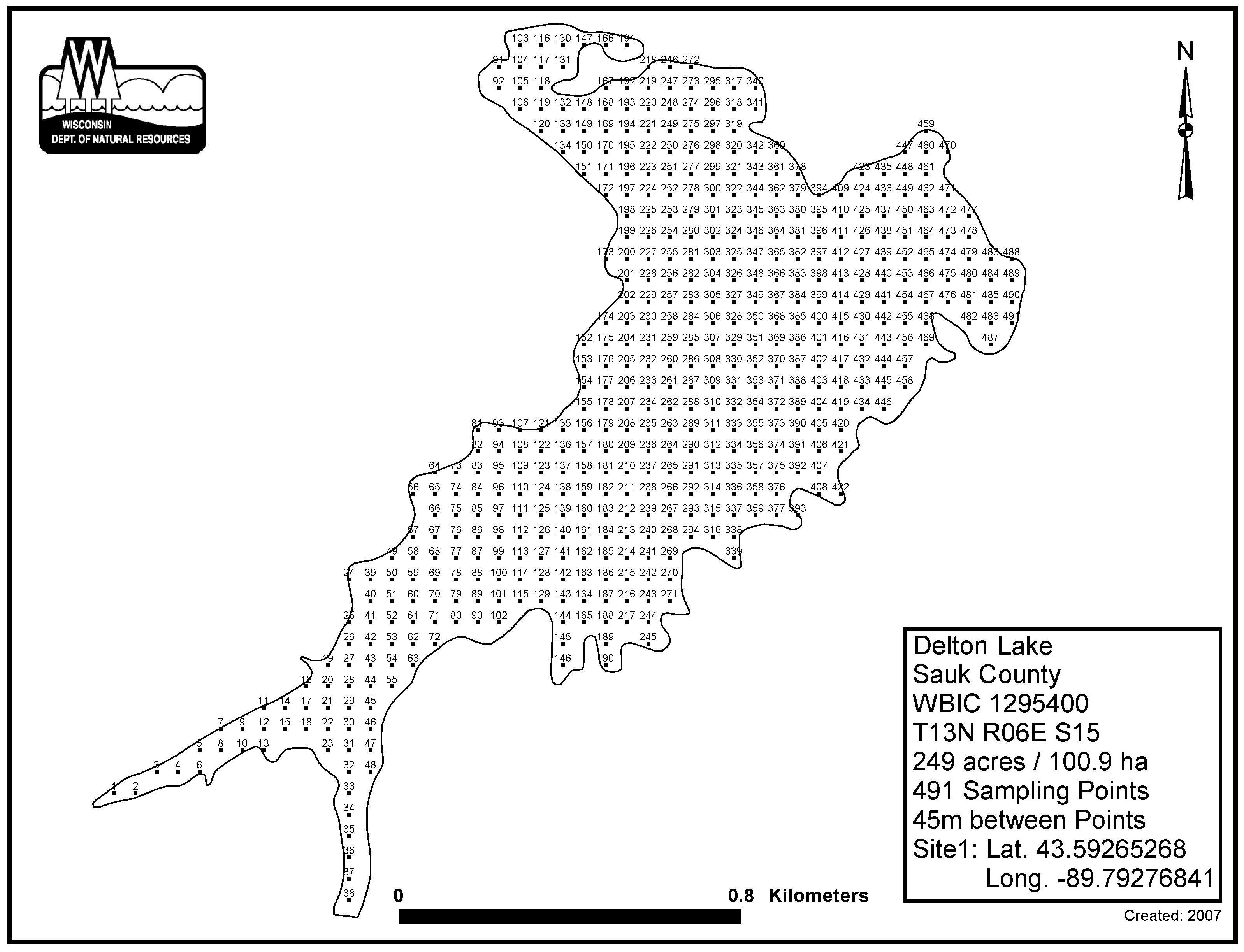 Delton Lake, Sauk County - Aquatic Plant Sampling Map (45 mpts)