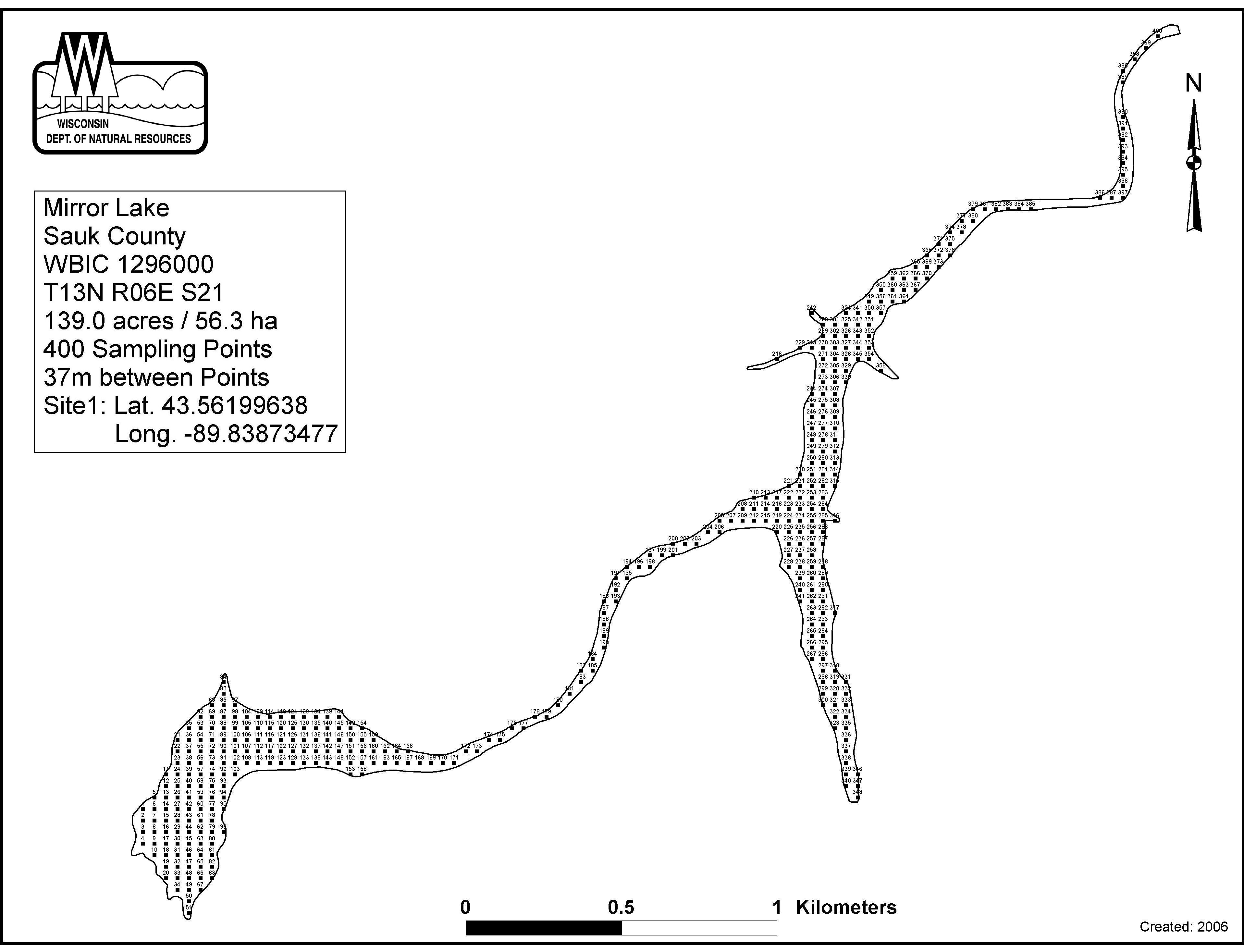 Mirror Lake, Sauk County - Aquatic Plant Sampling Map (1)(37 mpts)