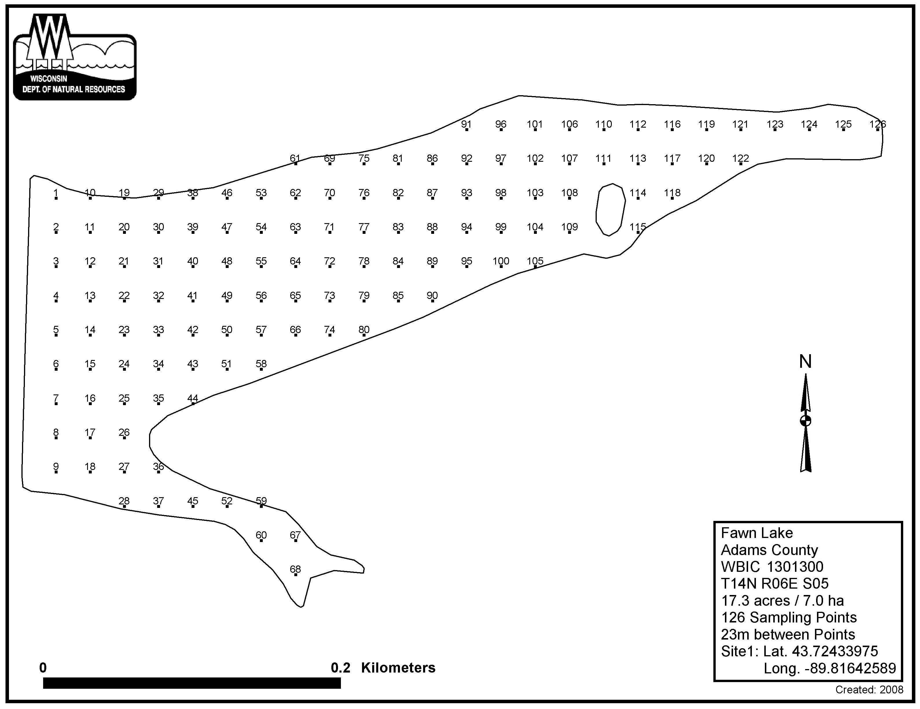 Fawn Lake, Adams County - Aquatic Plant Sampling Map (23 mpts)