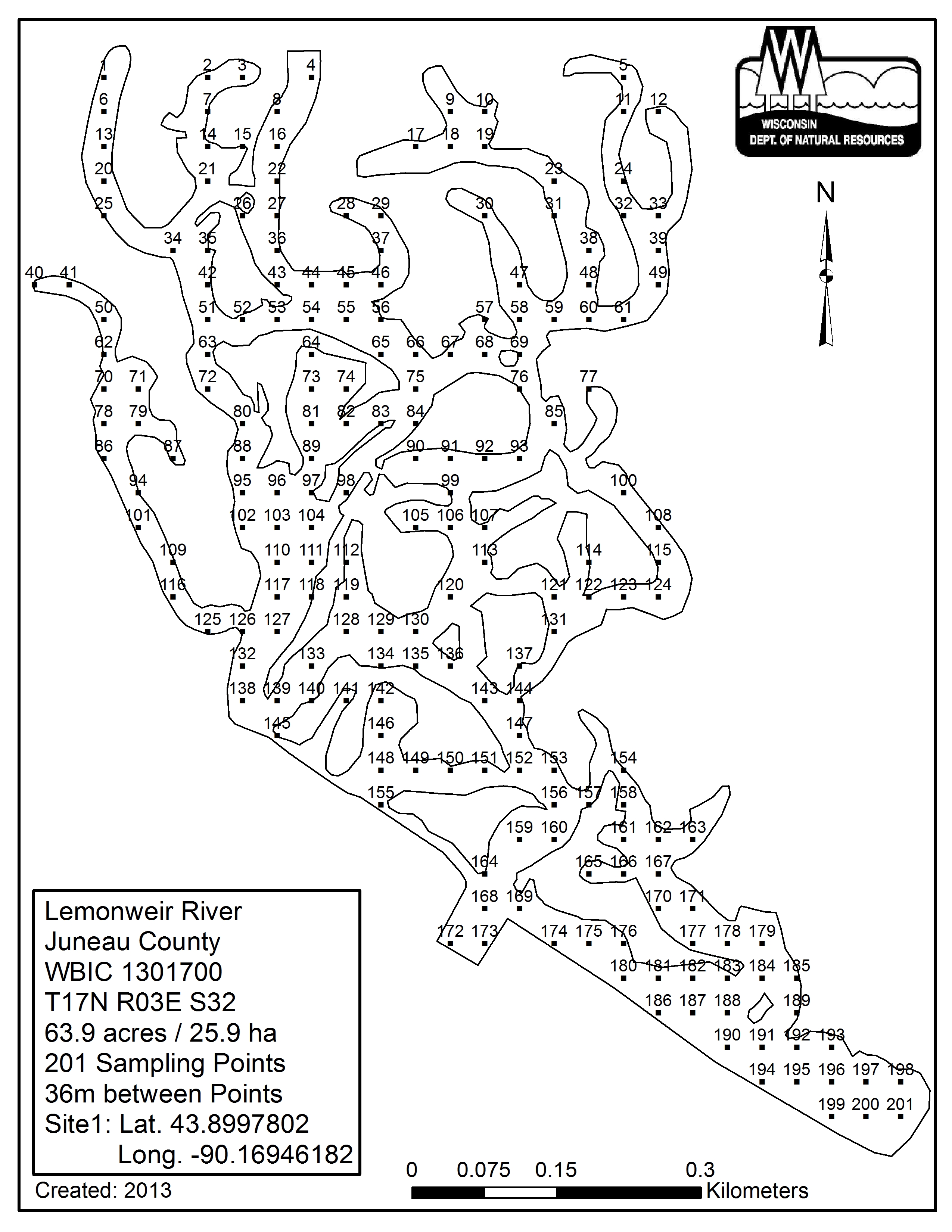 Lemonweir River, Juneau County - Aquatic Plant Sampling Map (36 mpts)