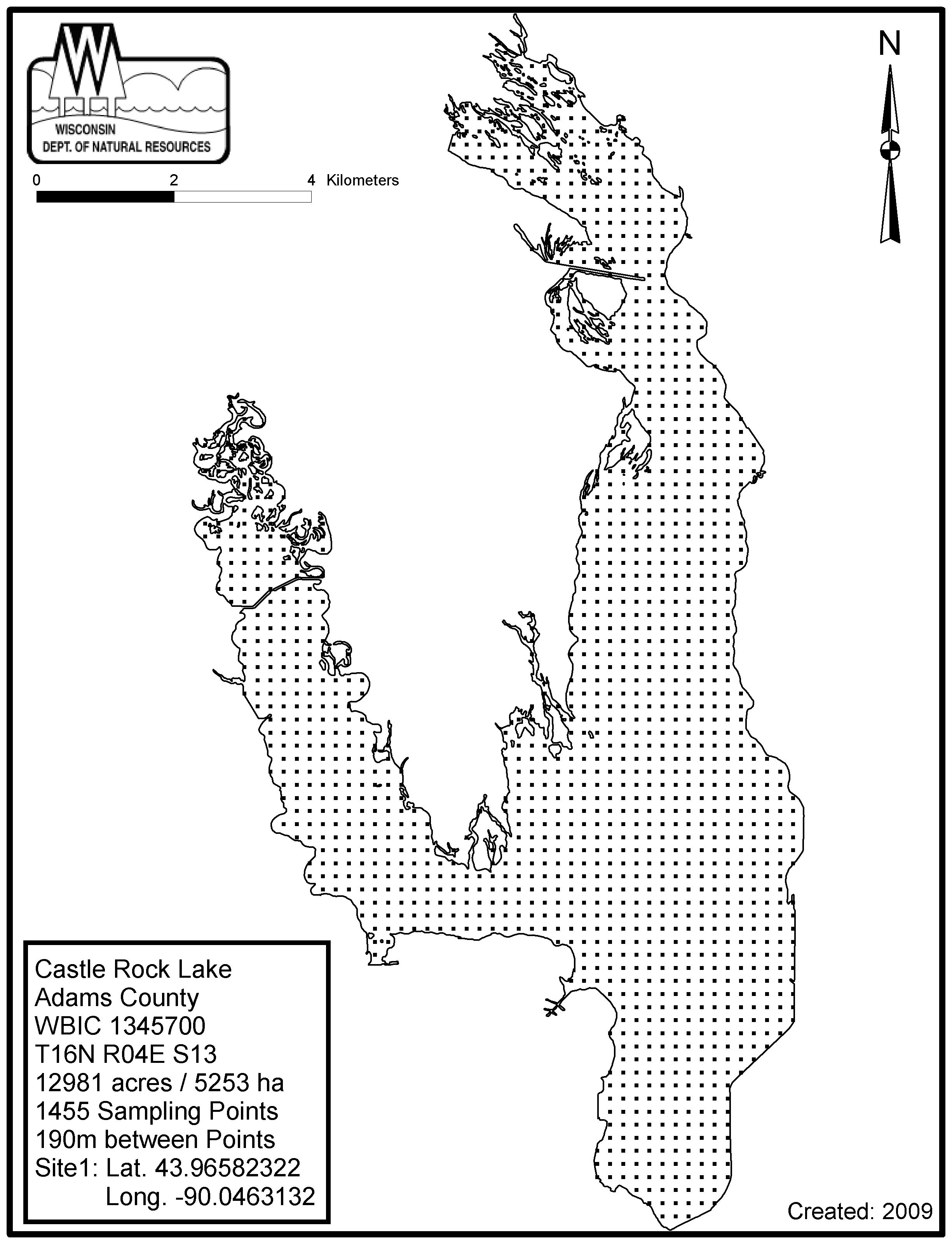 Castle Rock Lake, Adams County - Aquatic Plant Sampling Map (3) (190 mpts)