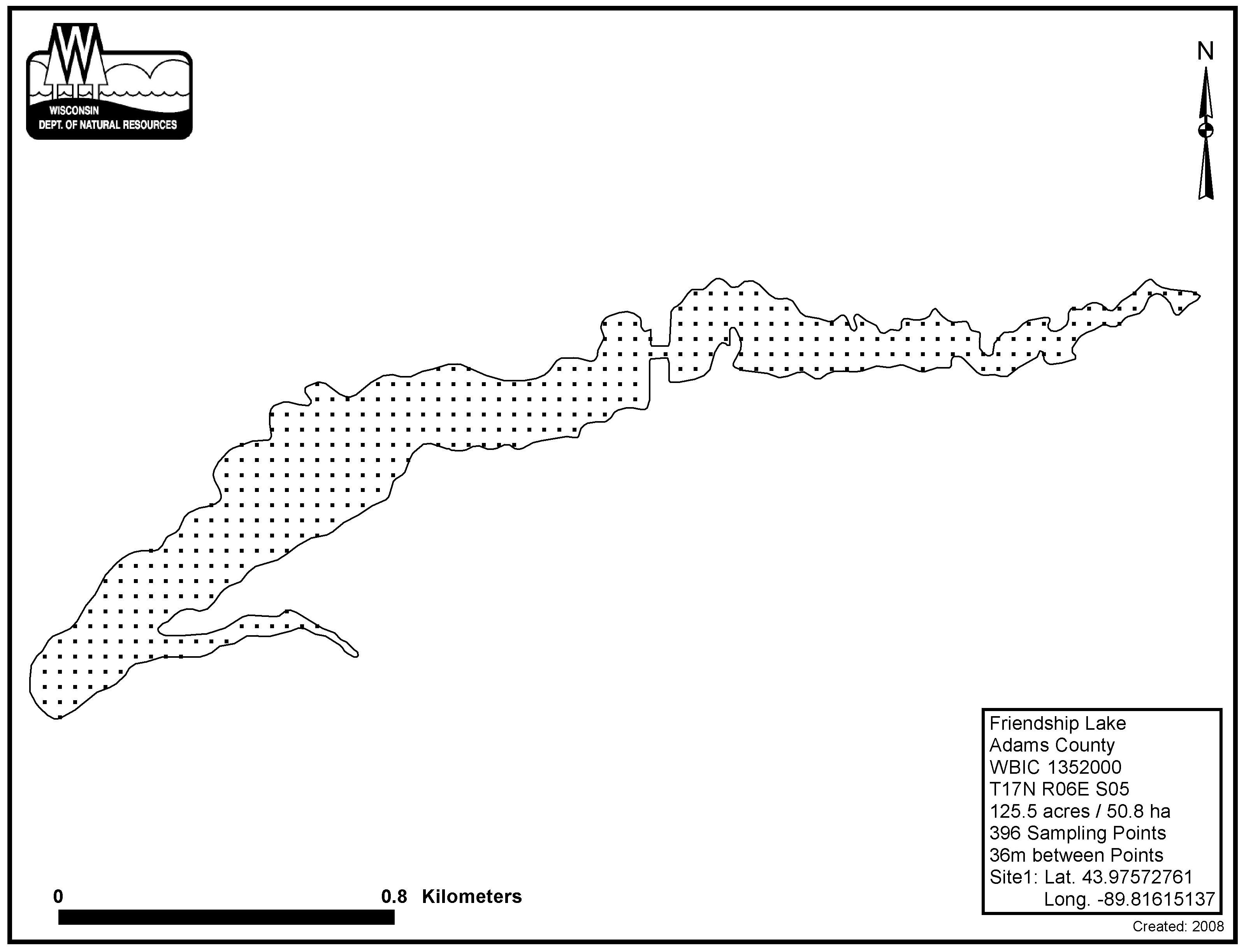 Friendship Lake (Millpond), Adams County - Aquatic Plant Sampling Map (36 mpts)