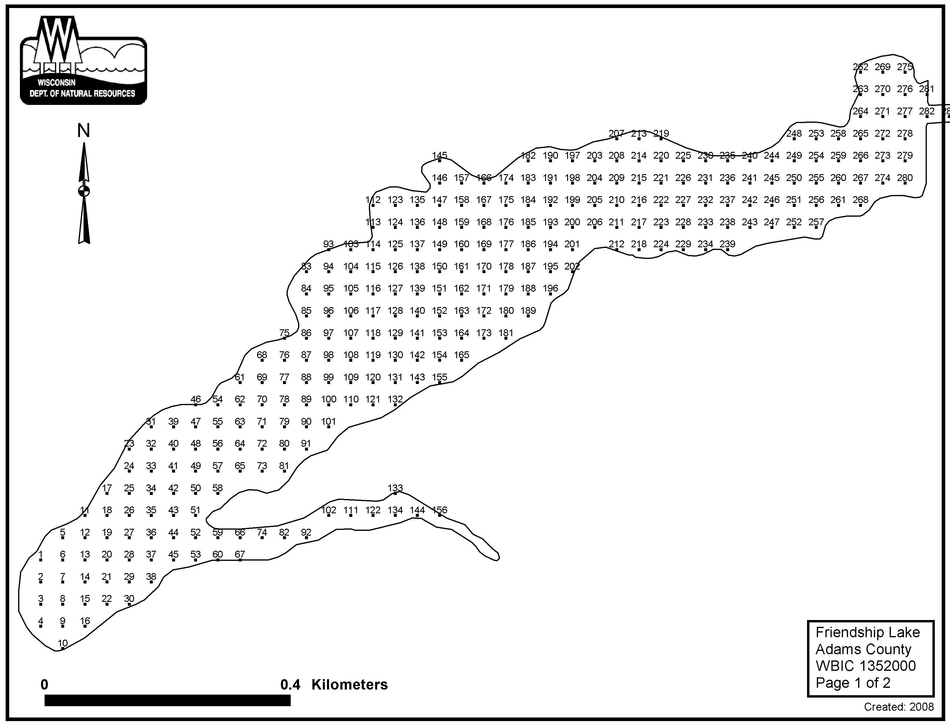 Friendship Lake (Millpond), Adams County - Aquatic Plant Sampling Map (2)(36 mpts)