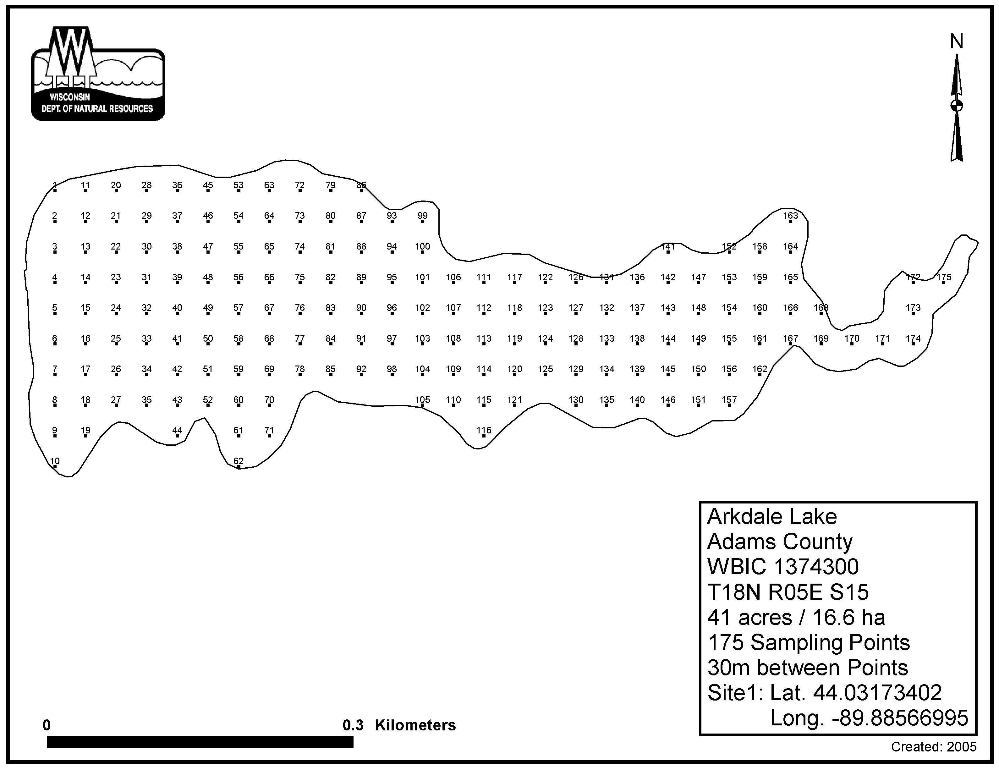 Arkdale Lake (Millpond), Adams County - Aquatic Plant Sampling Map (30 mpts)