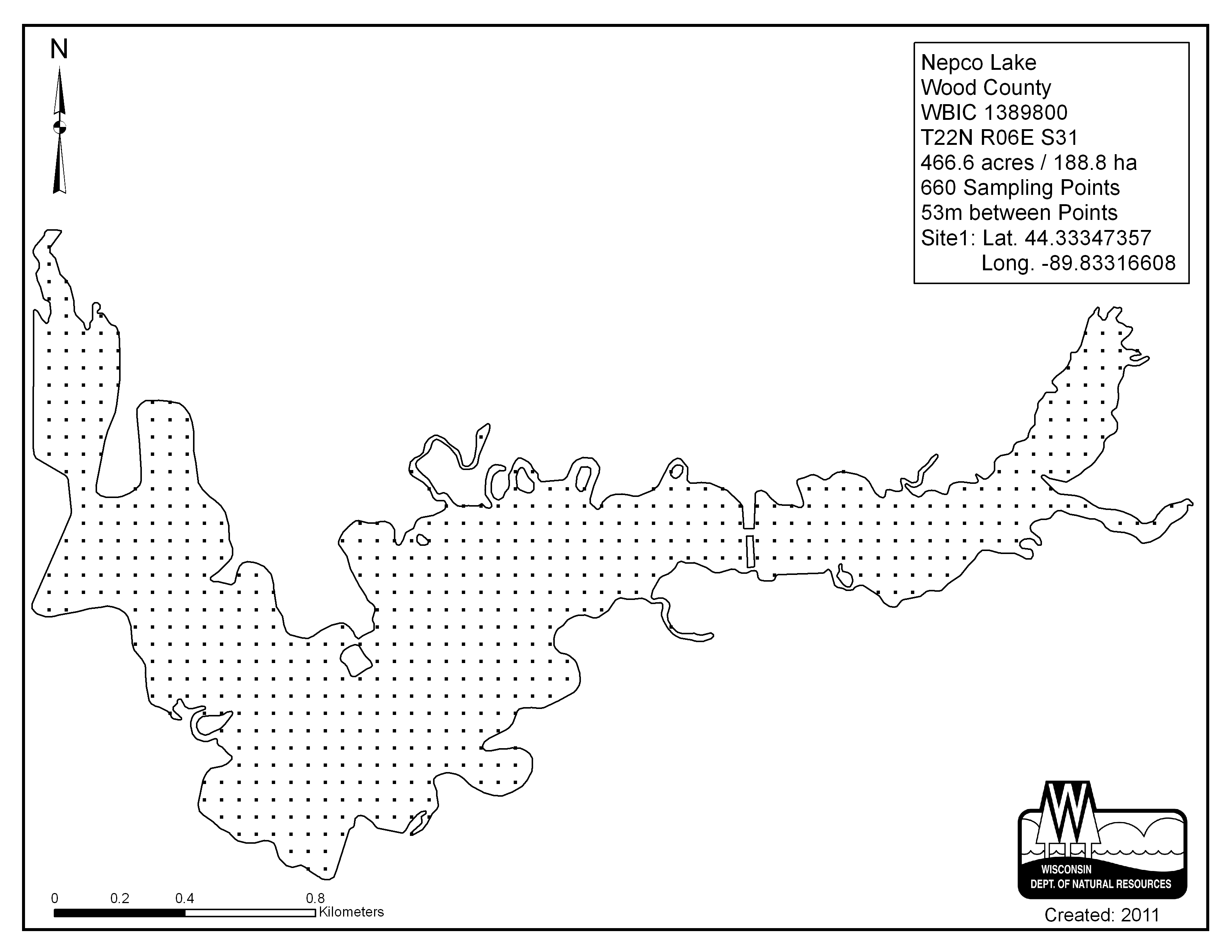 Nepco Lake, Wood County - Aquatic Plant Sampling Map (1) (53 mpts)
