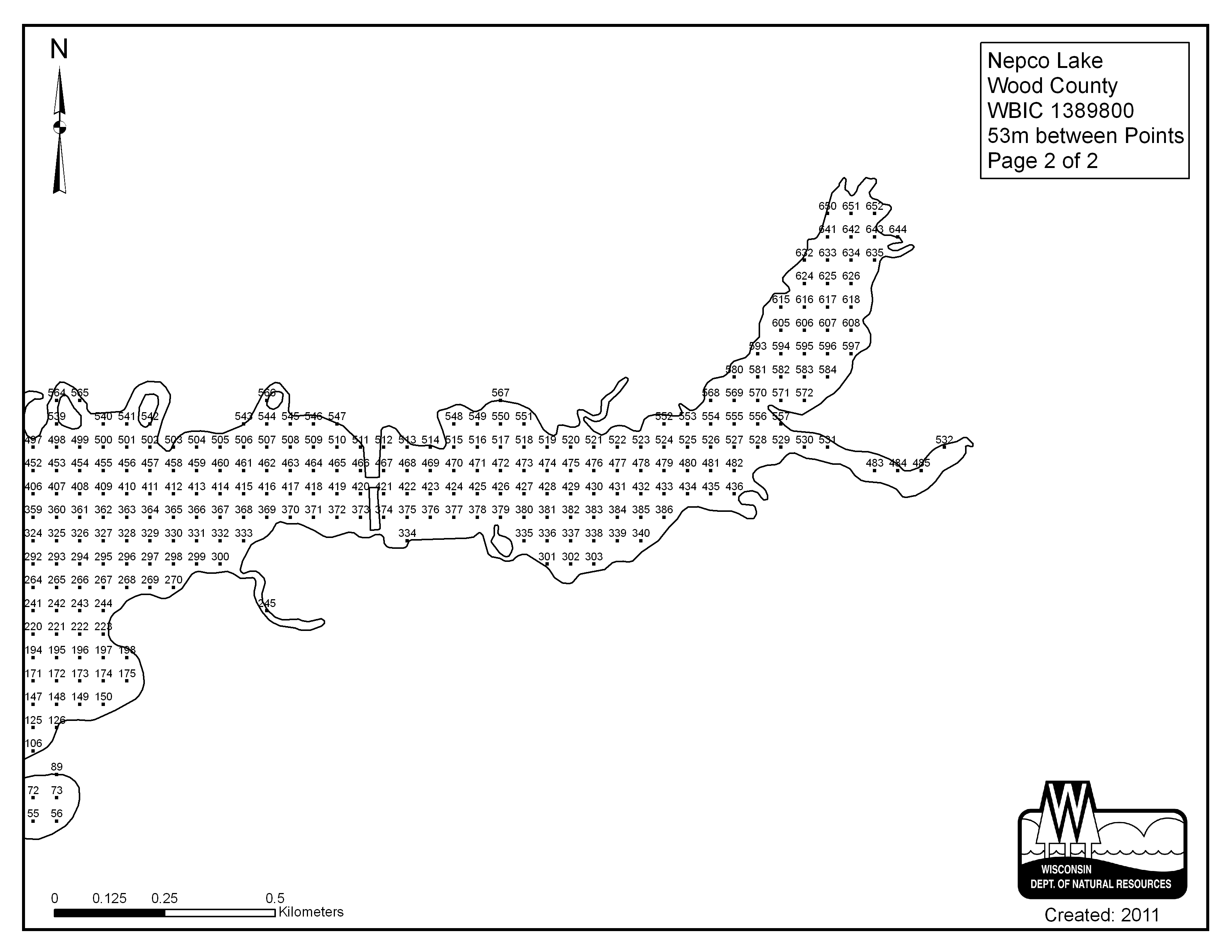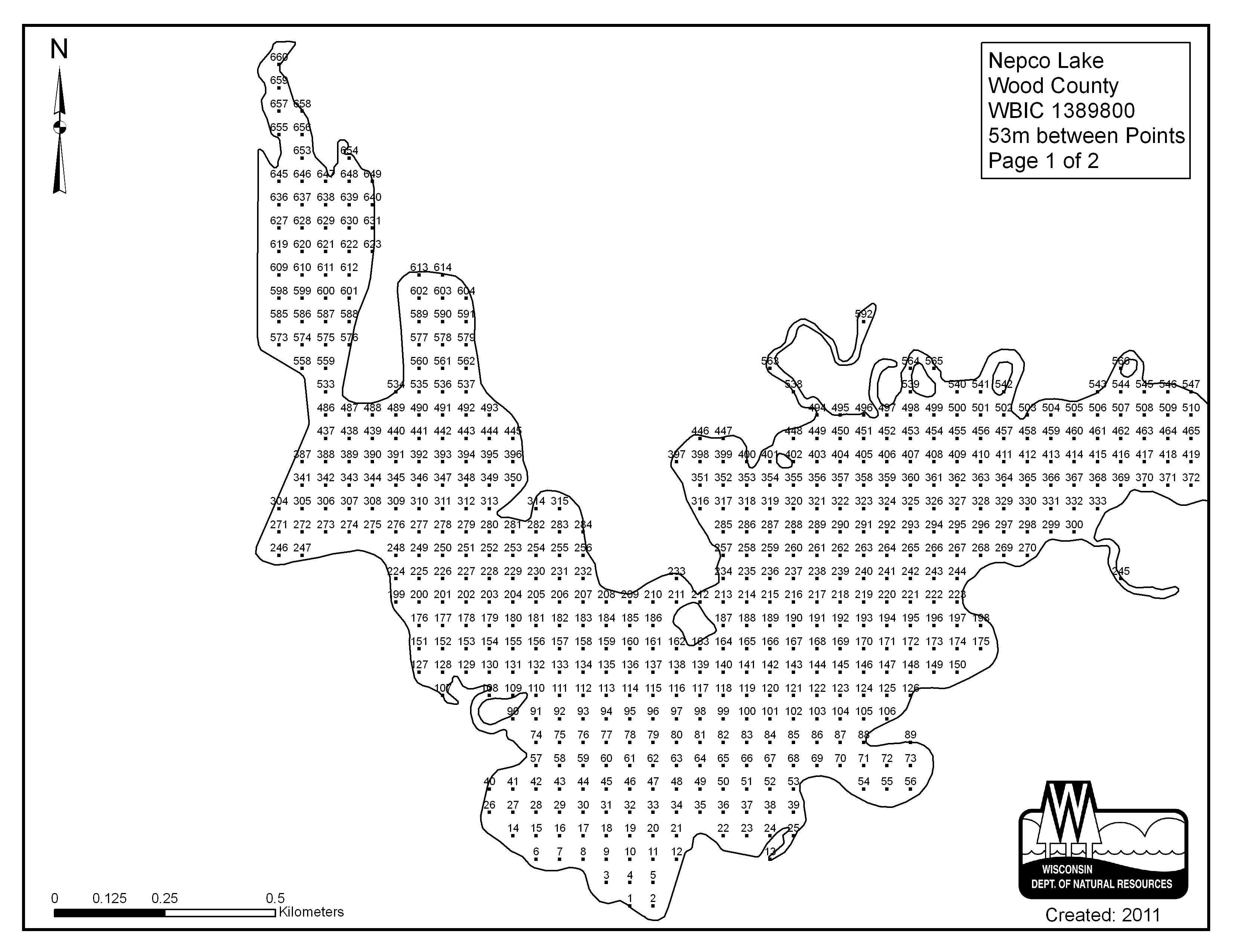 Nepco Lake, Wood County - Aquatic Plant Sampling Map (2) (53 mpts)