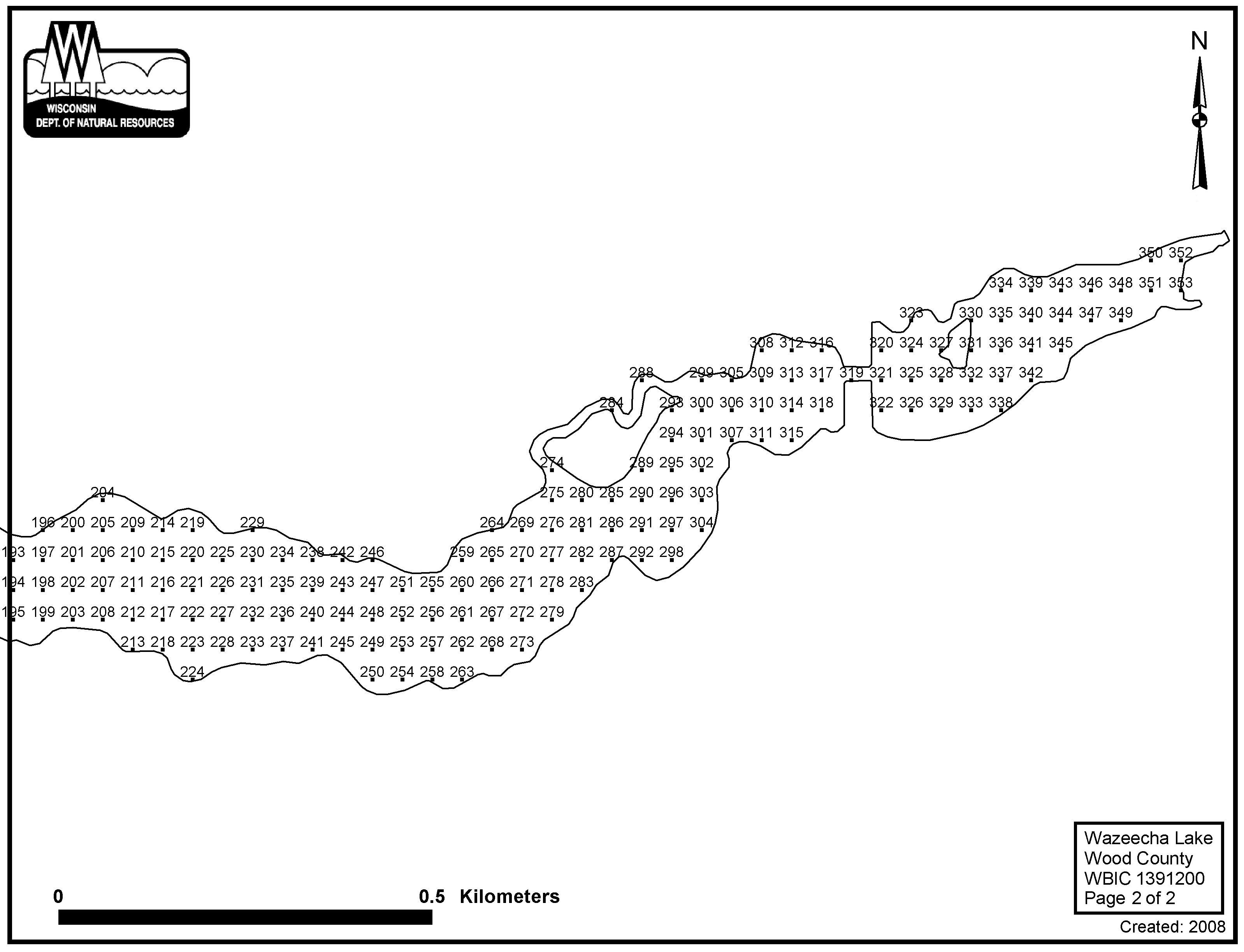 Wazeecha Lake*, Wood County - Aquatic Plant Sampling Map (2)(40 mpts)