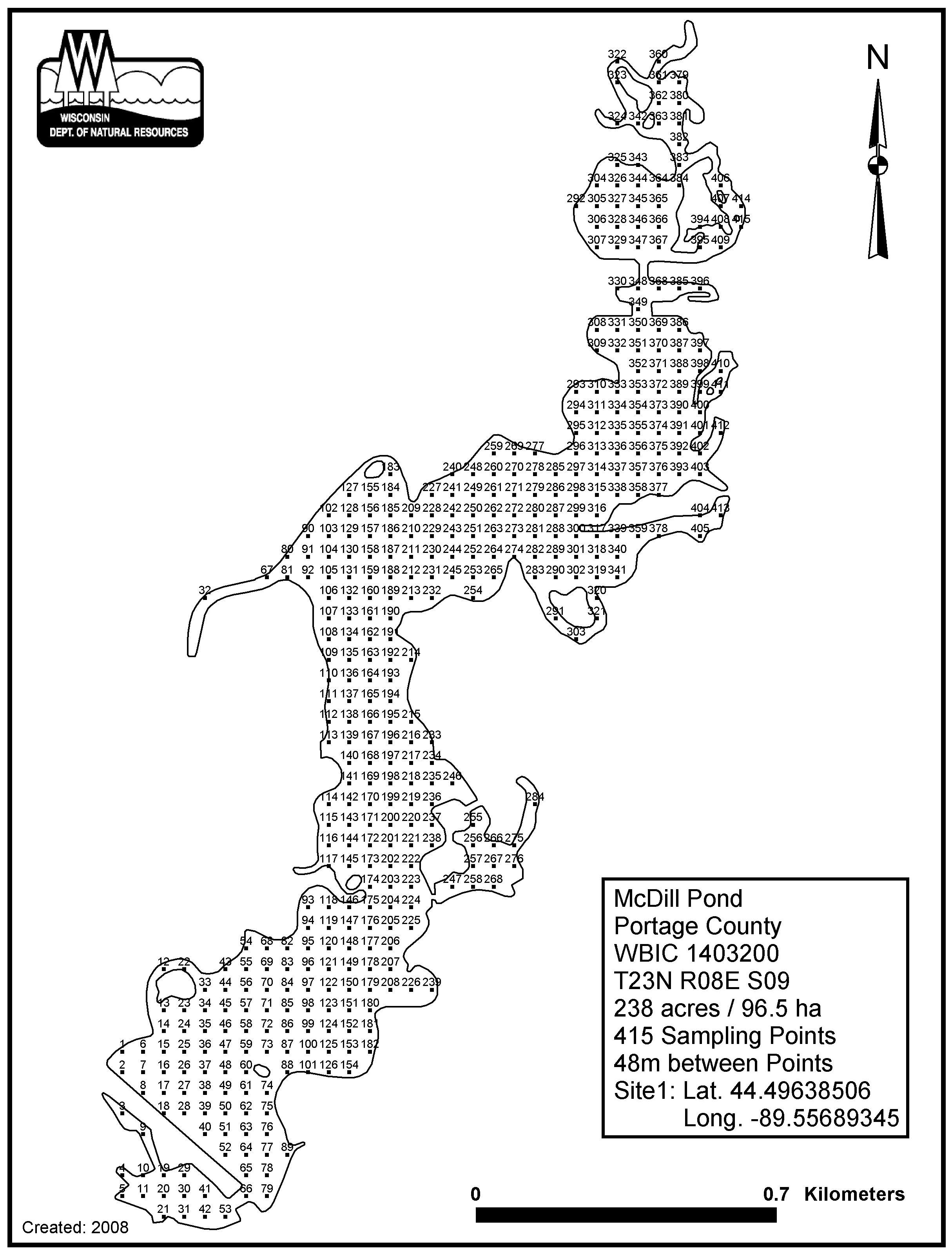 McDill Pond, Portage County - Aquatic Plant Sampling Map (48 mpts)