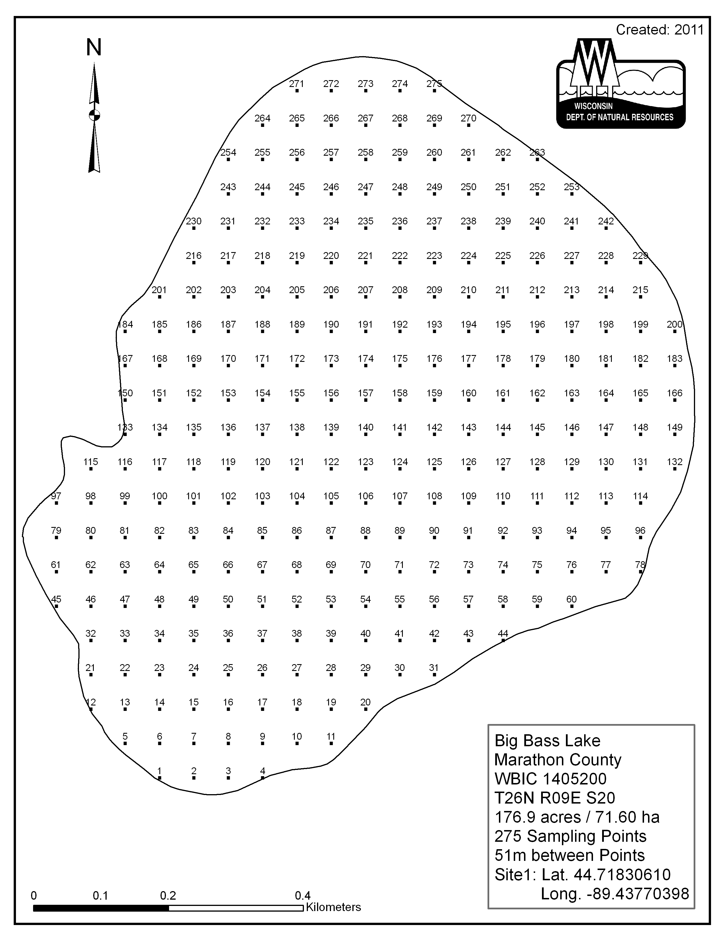 Big Bass Lake, Marathon County - Aquatic Plant Sampling Map (51 mpts)