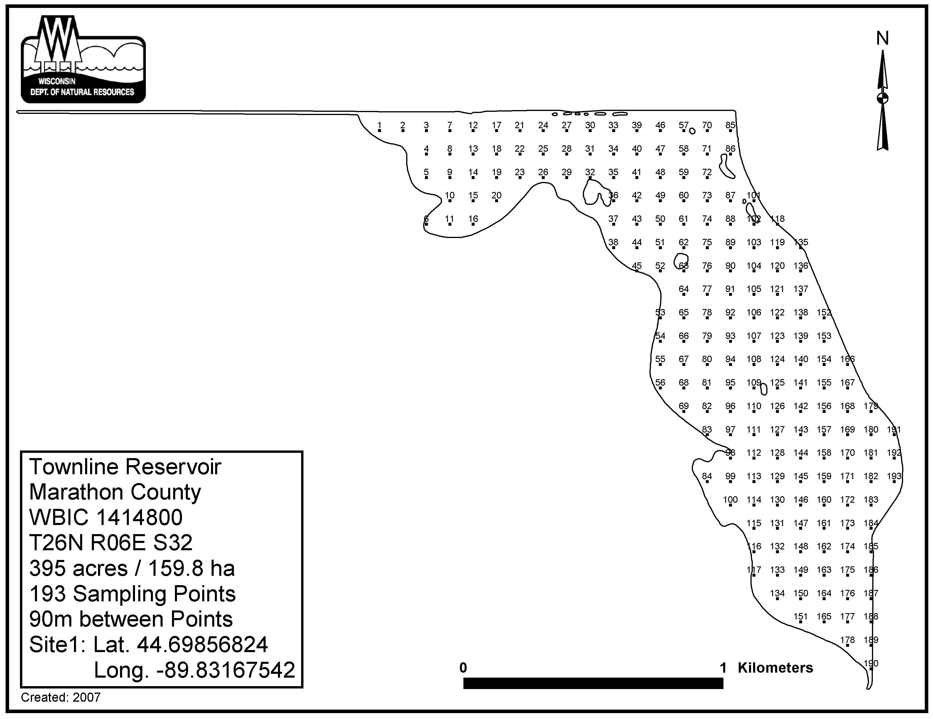 Townline Reservoir*, Portage County - Aquatic Plant Sampling Map (90 mpts)