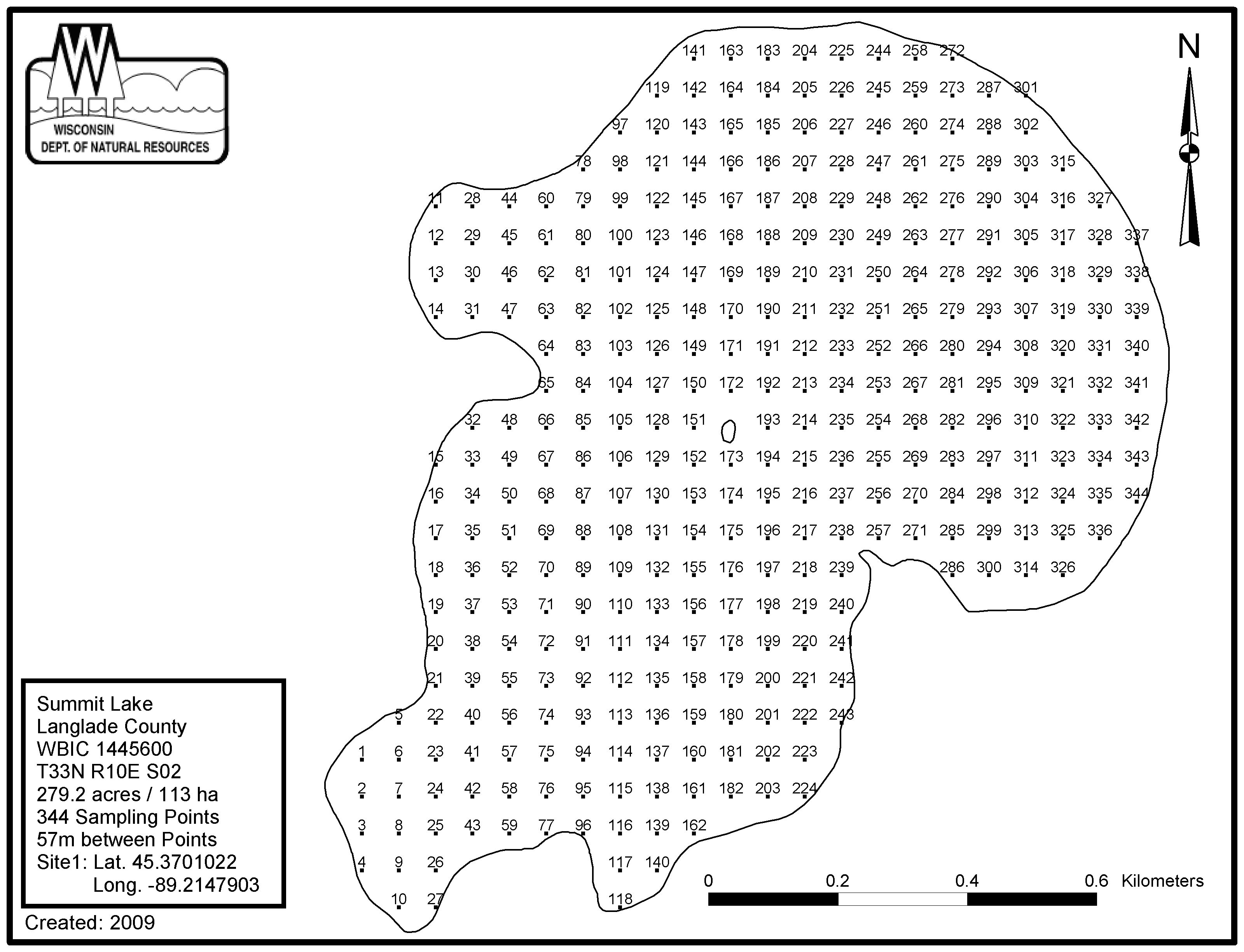 Summit Lake, Langlade County - Aquatic Plant Sampling Map (57 mpts)