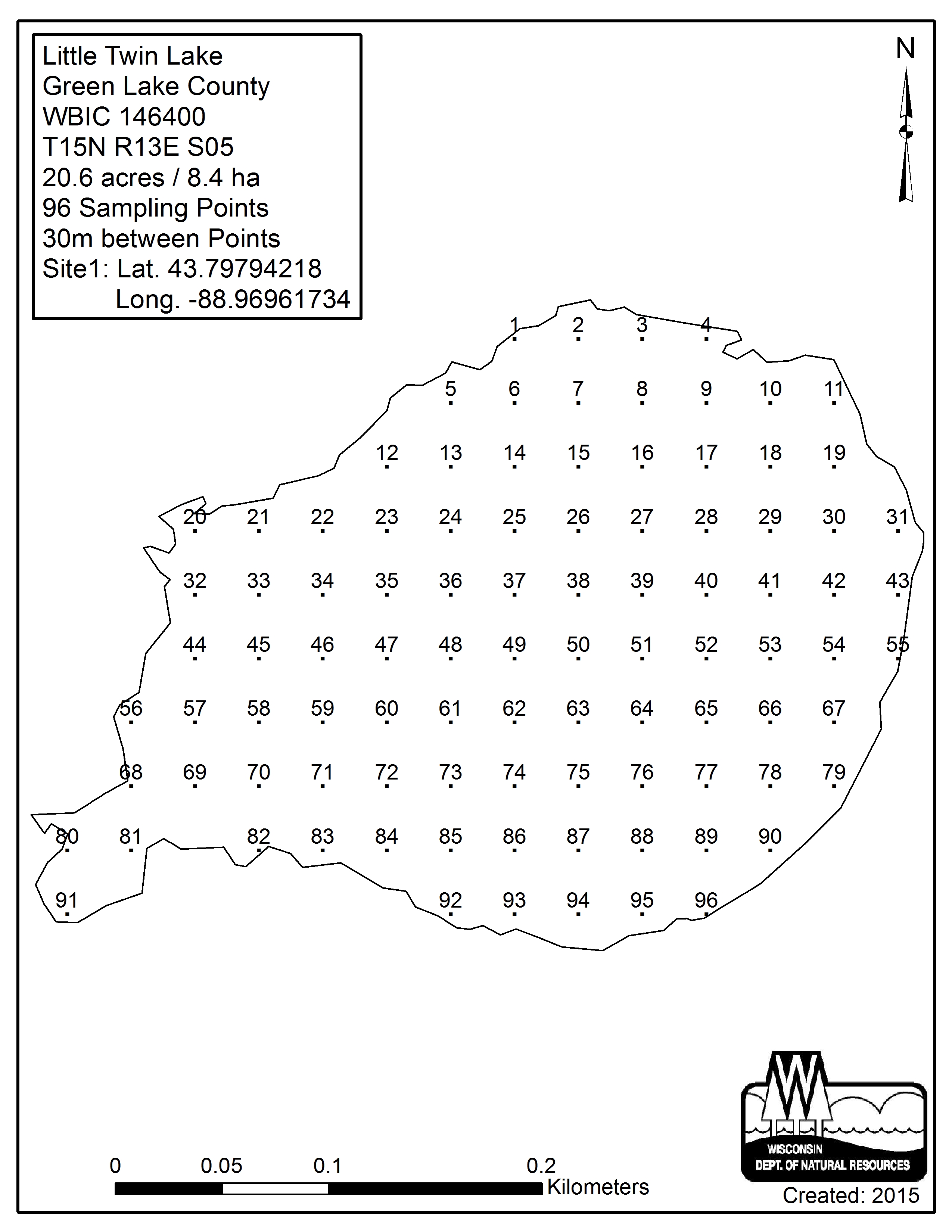 Little Twin Lake, Green Lake County - Aquatic Plant Sampling Map (30 mpts)