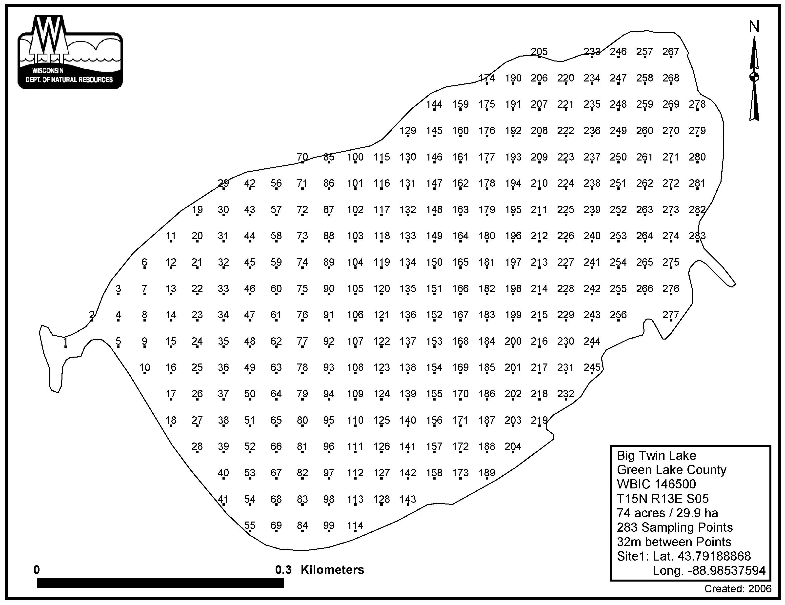 Twin Lakes, Green Lake County - Aquatic Plant Sampling Map (32 mpts)