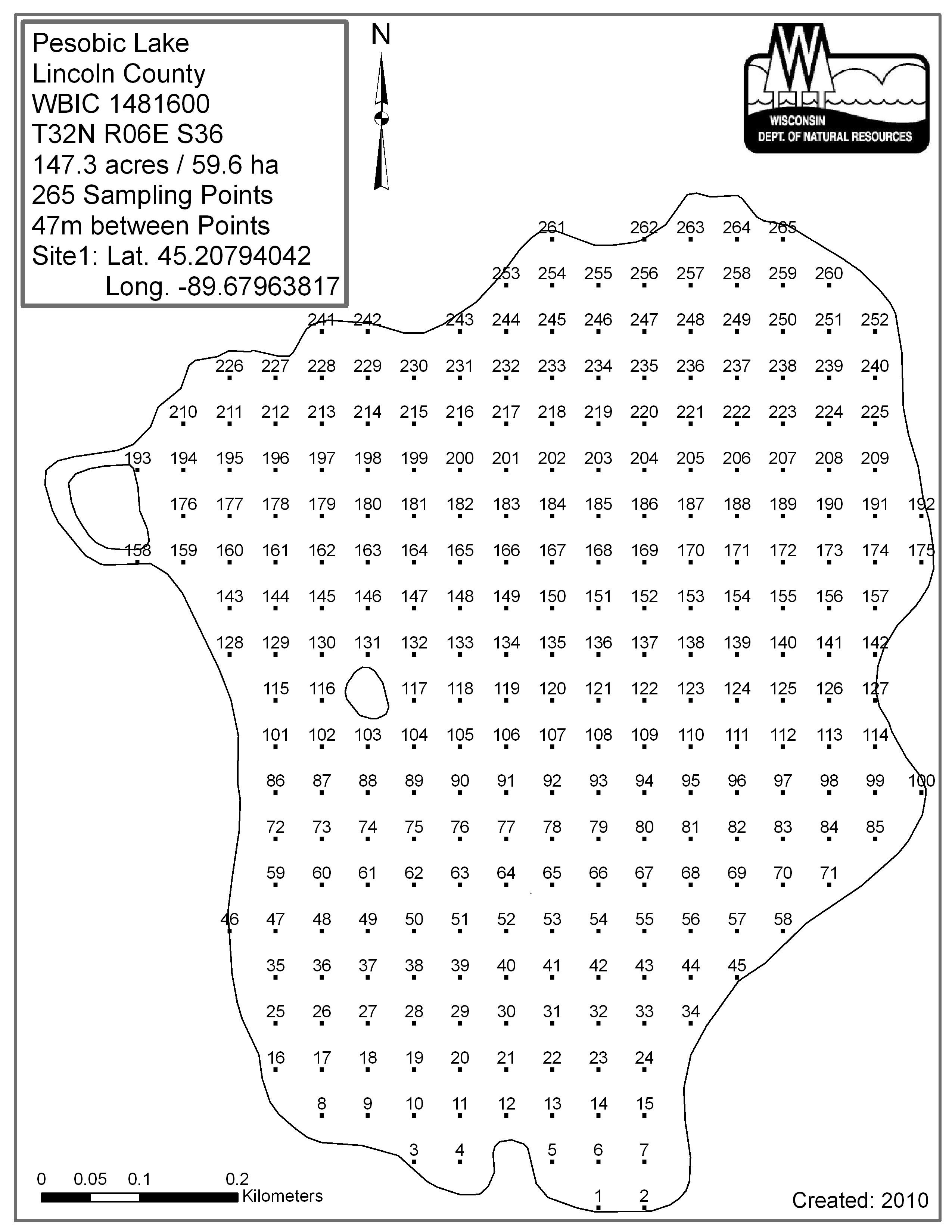 Pesobic Lake, Lincoln County - Aquatic Plant Sampling Map (47 mpts)